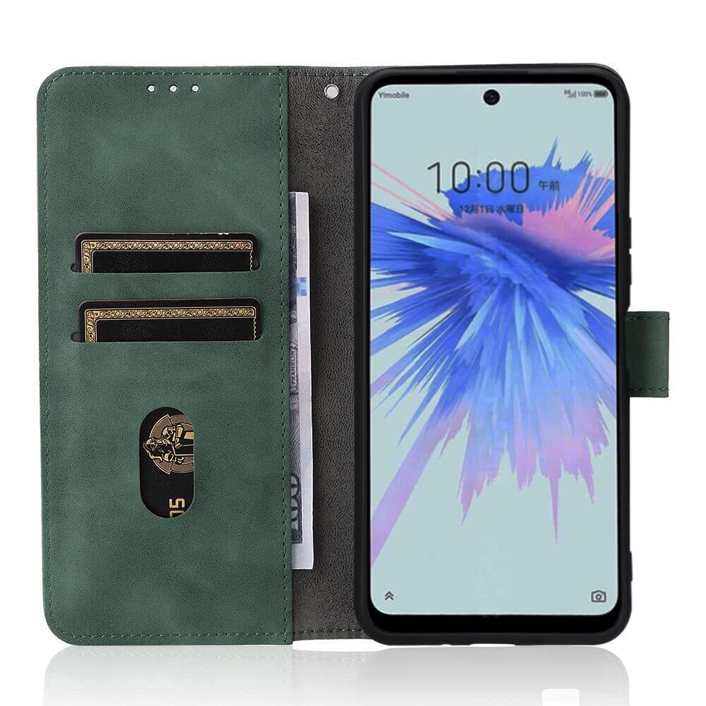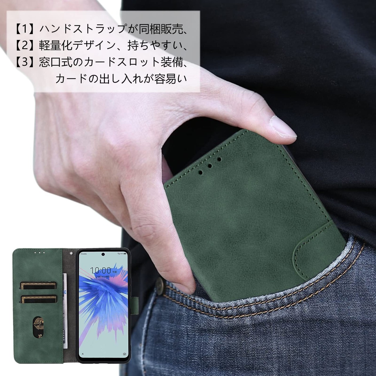 ZTE Libero 5G IV ケース 手帳型 【ストラップ 一本付】 適用 ZTE nubia Ivy Z6561J Libero5GIV A302ZT 対応 ケース Libero5G4 スマホケース リベロ5gIV リベロ5g4 case Heofuixt スタンド ストラップ付き 窓口式 カード入れ マグネット 手帳ケース カードケース つや消し 落ち着いた色 ダークグリーン エメラルド