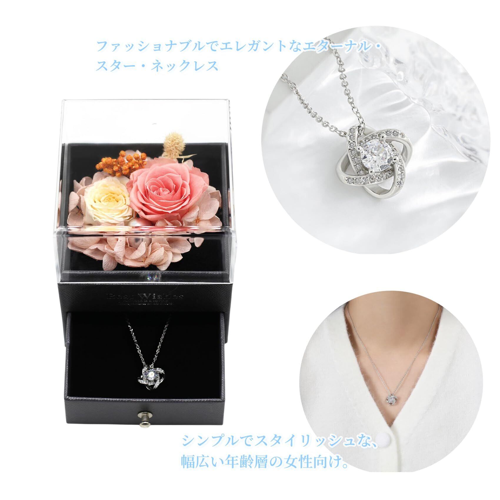 プリザーブドフラワー ネックレ クリスマスプレゼント 枯れない花 バラジュエリーボックス 母の日 Happy Birthday ショッパー付き ブライトバレンタインデー 誕生日 ドライフラワー ロ メッセージカード付き 妻 彼女 女性 結婚記念日プレゼント(オレンジ)