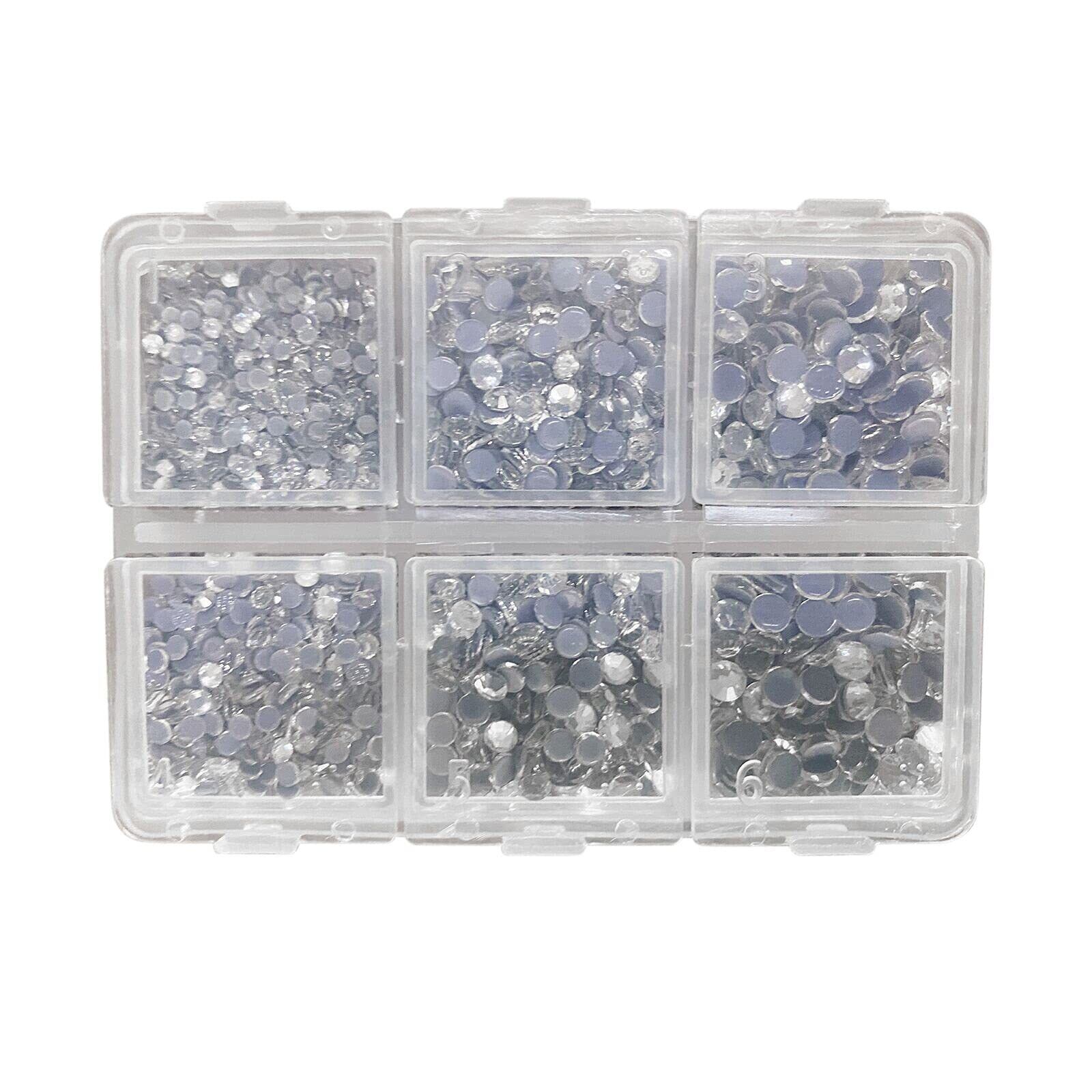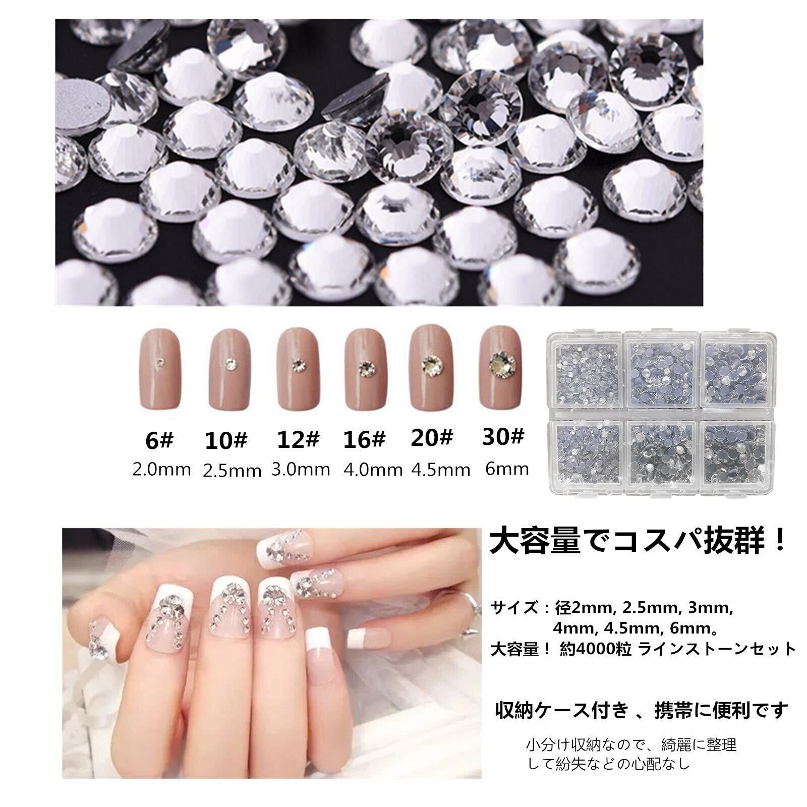 YFFSFDC ネイルパーツ ガラス製ラインストーン ネイル デコ クリスタル カラー ラインストーン DIY ネイルを飾てと服装使用 約4000粒 6サイズ 大容量セット 収納ケース付き
