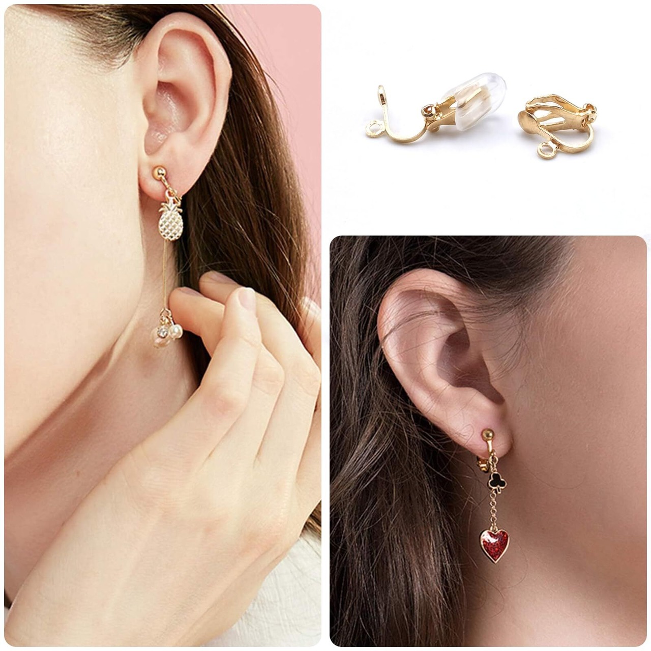【BEAUTY PLAYER】ピアス イヤリングコンバーター ジュエリー40個と痛み止めパッド40個 手芸 手作り用 パーツ イヤリング 耳穴なし (三角耳かき ゴールド)