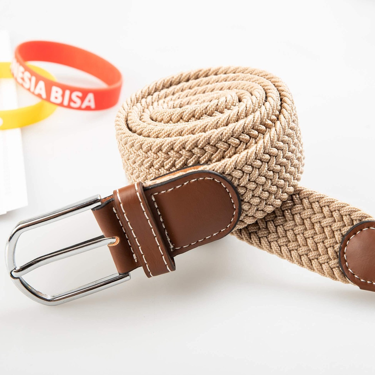 【サイズフリー】ベルト穴がどこにでも通せるフリーサイズの編みこみ式メッシュベルト。穴あけ/バックル取外し/切断調整も不要 フィット感の高い伸縮性ストレッチメッシュゴム素材を採用。