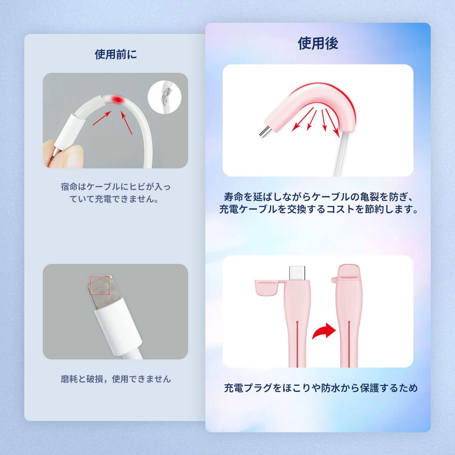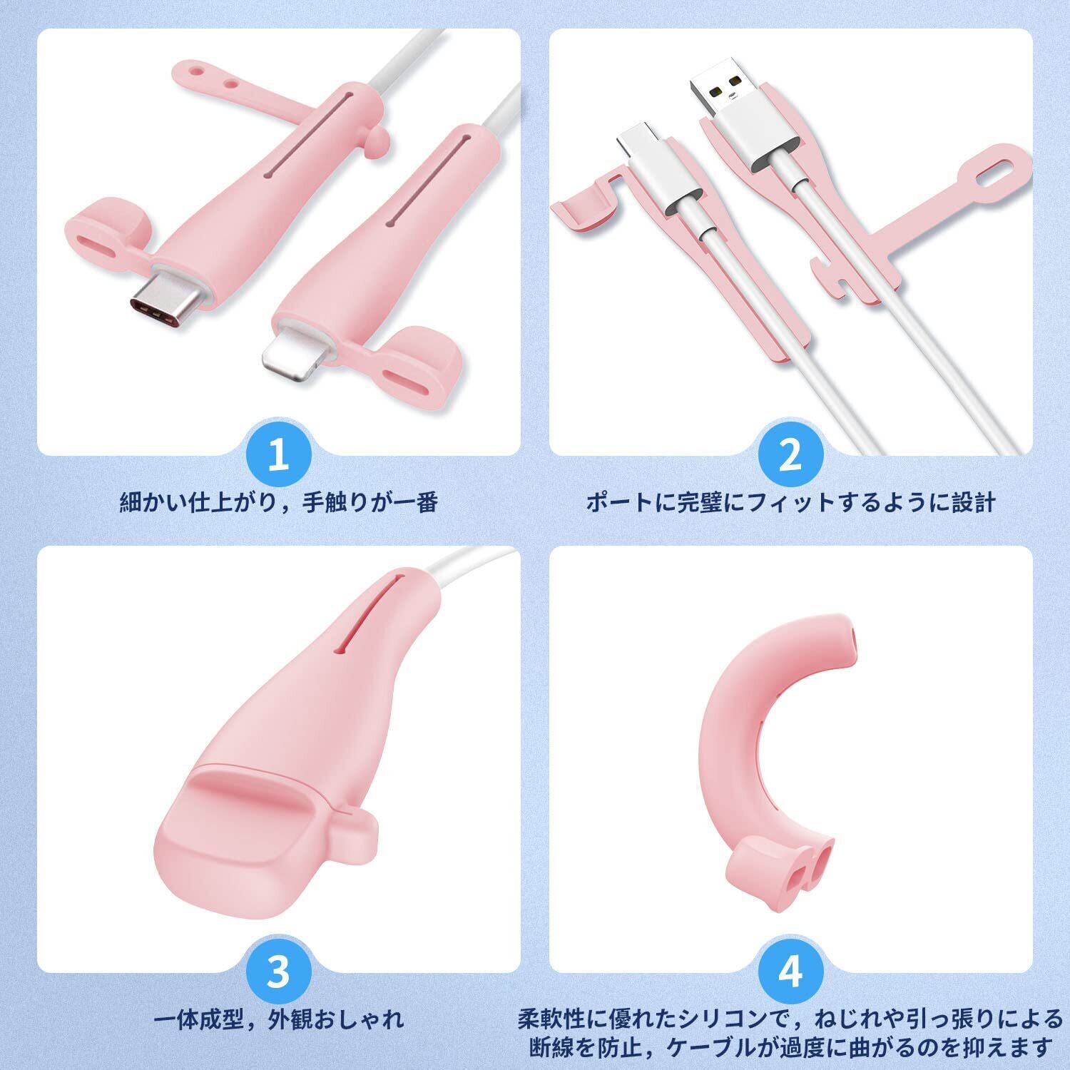 充電ケーブル プロテクター 【NOUKAJU】 適用 iPhone/iPad/Apple USB-C - Lightning ケーブル 用 プロテクター 保護カバー ライトニングケーブル 断線防止 シリコン製 データラインプロテクター ケーブルクリップ 保護セーバー ケーブル収納カバー 折り防止 汚れ防止 耐摩耗性 Android Type C & Type C ケーブル 用 ケーブルカバー(ピンク)