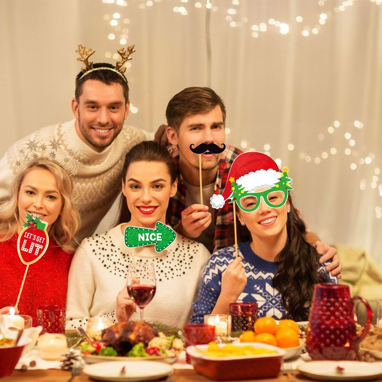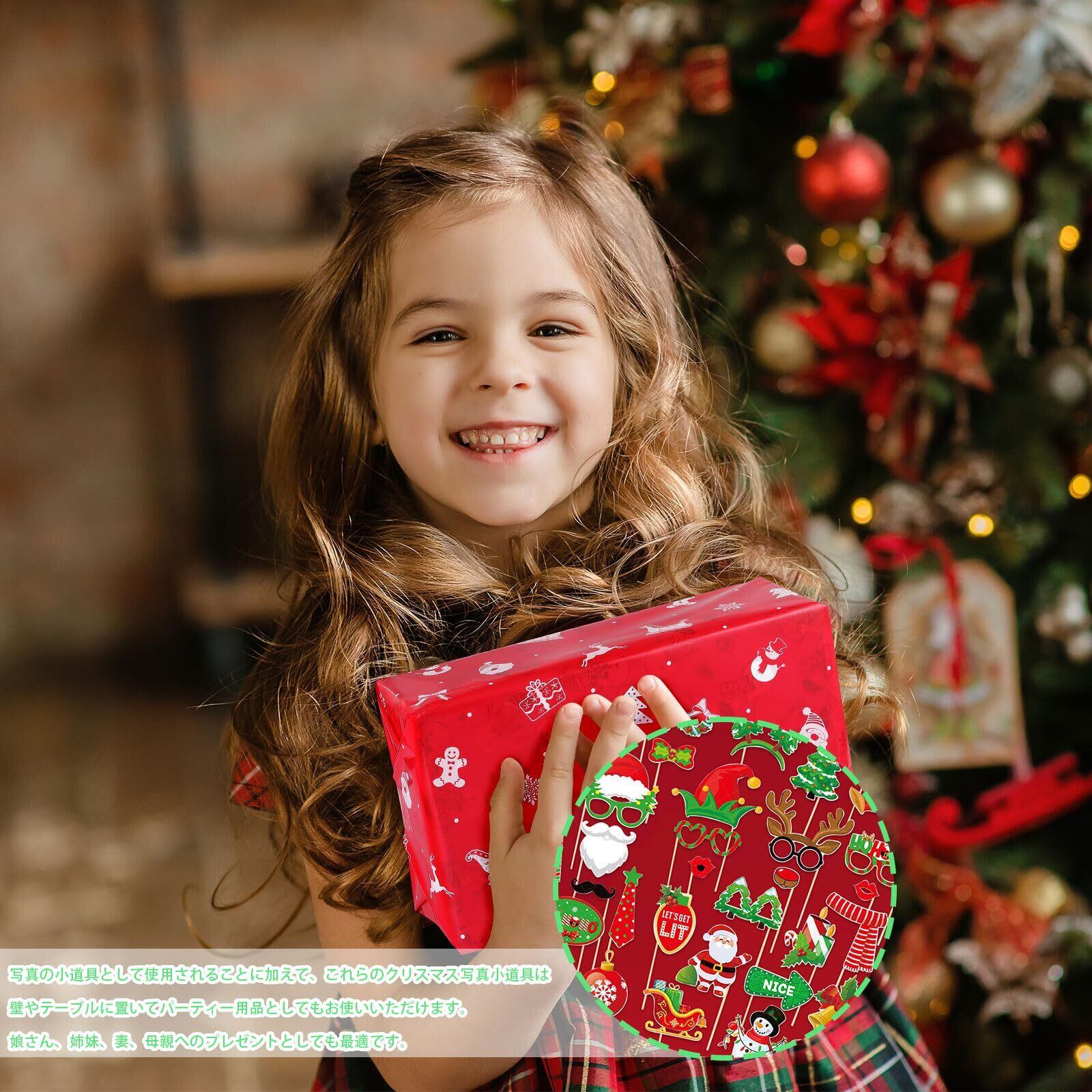 【パッケージ】クリスマス フォトプロップス32点セット。 【素材】高品質の紙で作られており、厚く、軽量で、耐久性があり、壊れにくいです。 安全で環境に優しく、滑らかな質感と快適な着用感。 【かわいいデザイン】このクリスマスフォトプロップにはメガネ、唇、ひげ、ヘッドバンド、帽子、スカーフ、ネクタイなどが含まれており、サンタクロース、クリスマスツリー、トナカイ、ジンジャーブレッドマン、花輪、ベルなどの古典的なクリスマス要素が含まれています。カラフルでファッショナブルでクリスマス気分がいっぱいでとても楽しいです! 【使いやすい】この写真用小道具には木の棒と接着剤が付属しています。使用するときは自分で貼り付けて組み立てる必要があります。写真を撮るとき、組み立てられた小道具を手に取ると、さまざまなスタイルの写真を撮ることができ、かわいくて面白いです。さまざまなクリスマス要素が楽しいクリスマスの雰囲気を作り出します。 【幅広い用途】これらの小道具は、写真撮影に最適なアクセサリーであり、パーティーに欠かせないファッションアイテムです。 可愛くて楽しくて、大人も子供も使えます!クリスマス、コスプレ、仮装パーティー、コンサート、テーマパーティー、誕生日、カーニバル、写真撮影などに最適です。家族や友達と一緒に可愛くて面白い写真を撮って、忘れられない思い出を作りましょう!