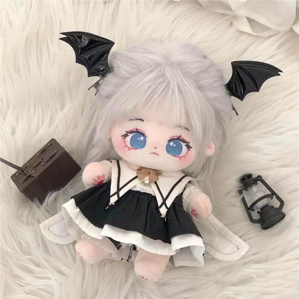 niannyyhouse 20cm ぬいぐるみ 服 ブラック ワンピース スカーフ ショーツ 綿人形 着せ替え ドールアクセサリー