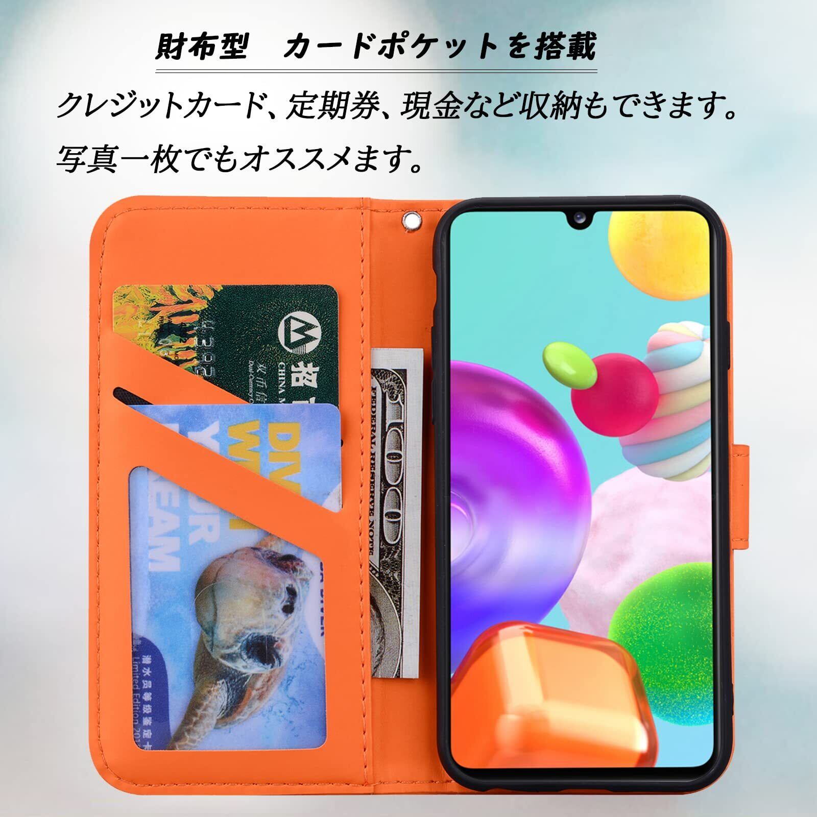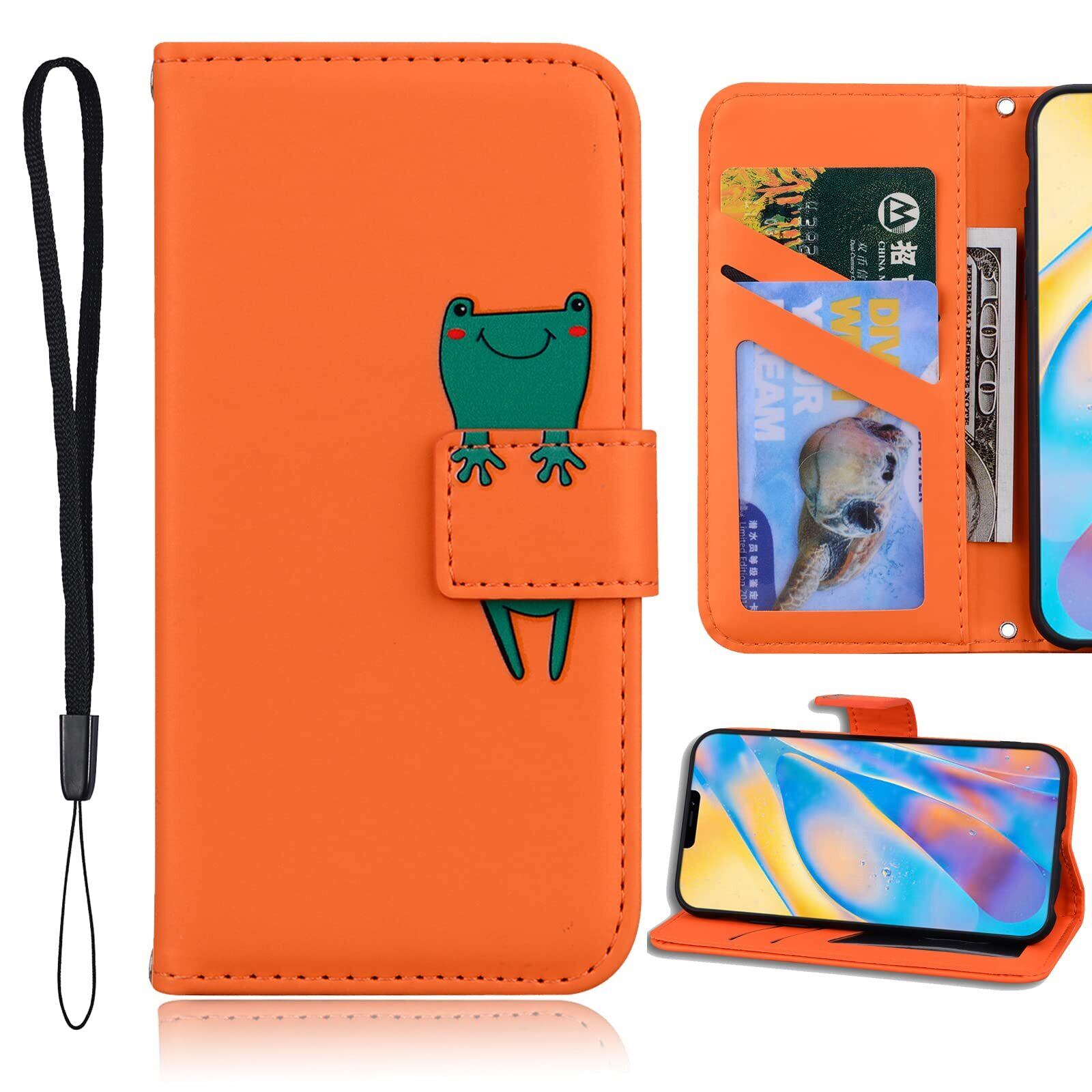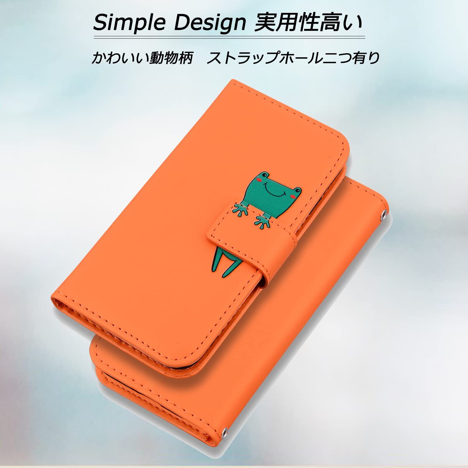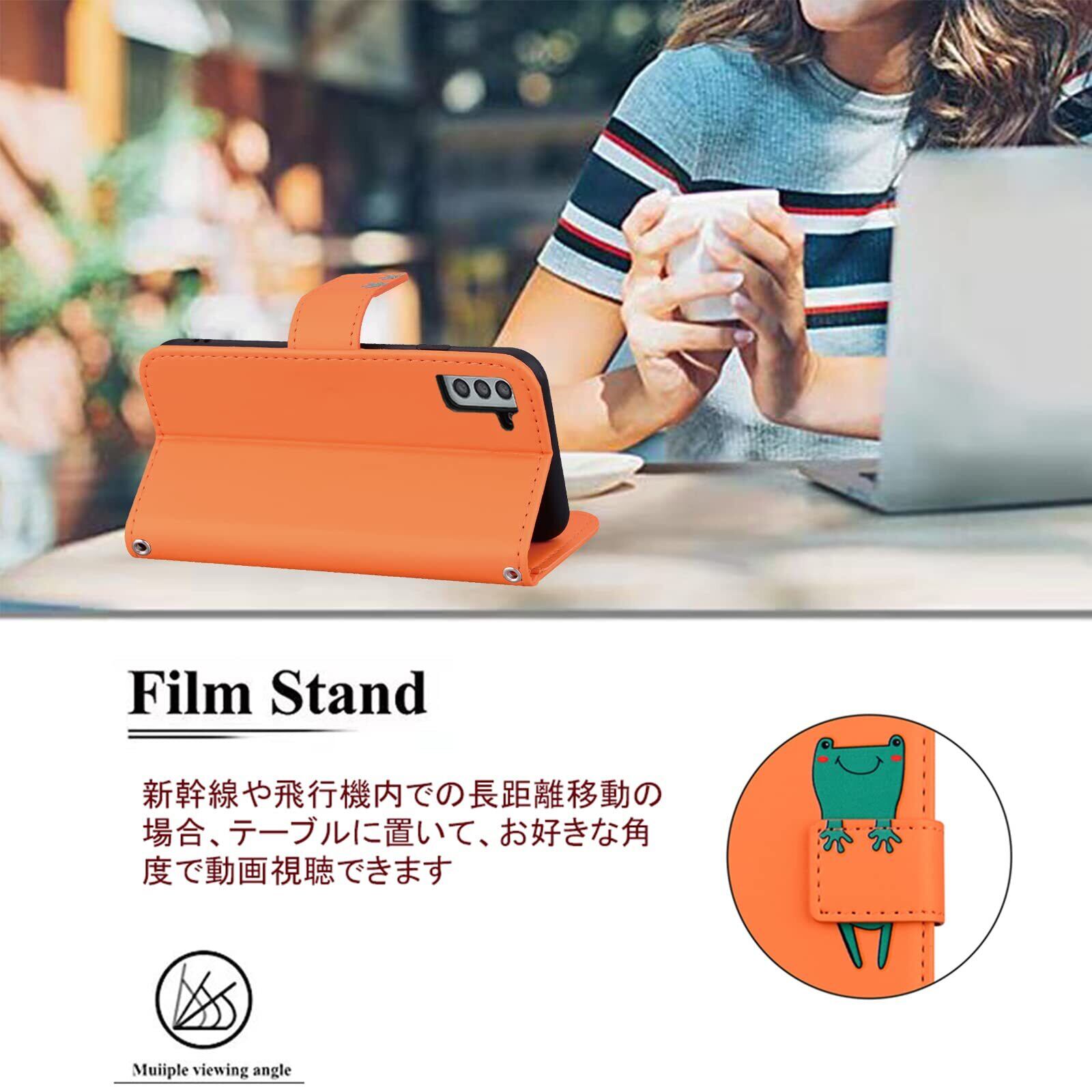 Galaxy A55 5G ケース手帳型 SC-53E SCG27 ケース手帳 サムスン ギャラクシーA55 カバー SC53E 手帳型ケース スマホケース galaxy a55 case SCG27 携帯ケース 携帯カバー レザー製 TPUケース 財布型 ベルトマグネット スタンド機能 カエル かわいい 動物柄 薄型 防水 黒 (Samsung Galaxy A55 対応) オレンジ
