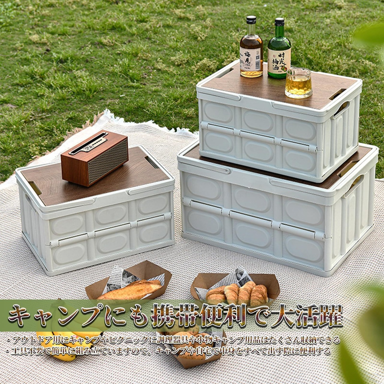 【汎用性・多用途】収納ボックスは車載用、室外用、アウトドア、キャンプ、家庭用、オフィス、会社、店舗用の収納に適用することができます。車載用ではトランクに水、道具などの小物収納にも大活躍します。車内の快適性を高め、車のグレードが向上し満足感を得られます。また、室内用にキッチンやリビング、寝室でも利用可能、収納しながらおしゃれなテーブルを演出できます。アウトドア用にキャンプやピクニックに調理器具や小物キャンプ用品はたくさん収納できます。