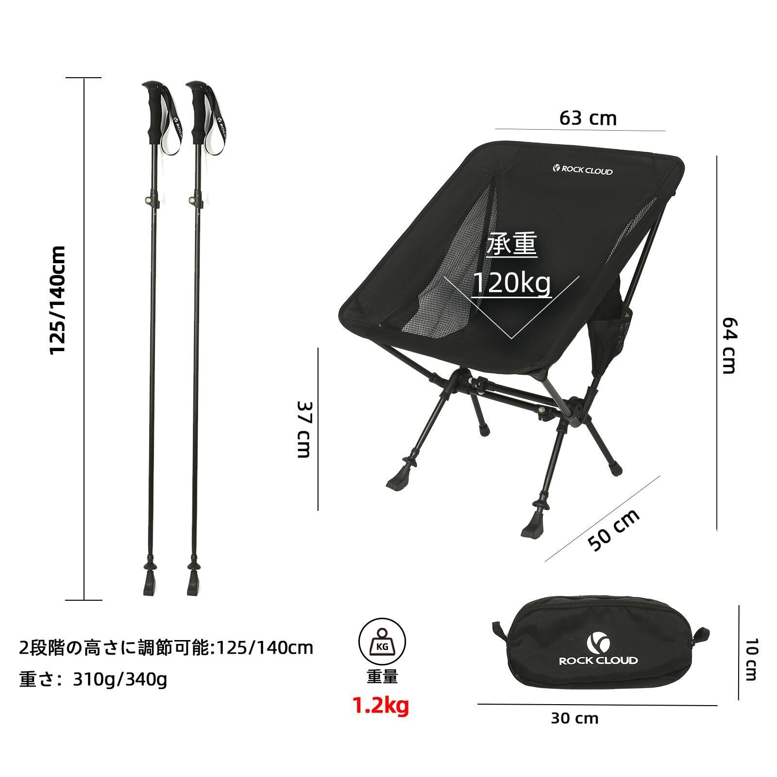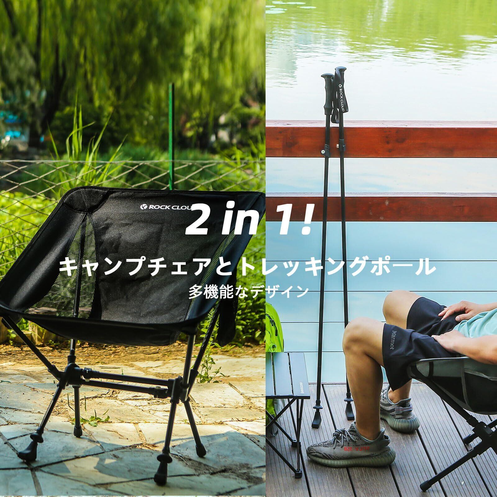 ROCK CLOUD アウトドアチェア トレッキングポール 2-in-1 折りたたみ キャンプチェア登山杖 椅子 アウトドア 超軽量 コンパクト 登山 旅行 お釣り ピクニック お花見 収納袋付き