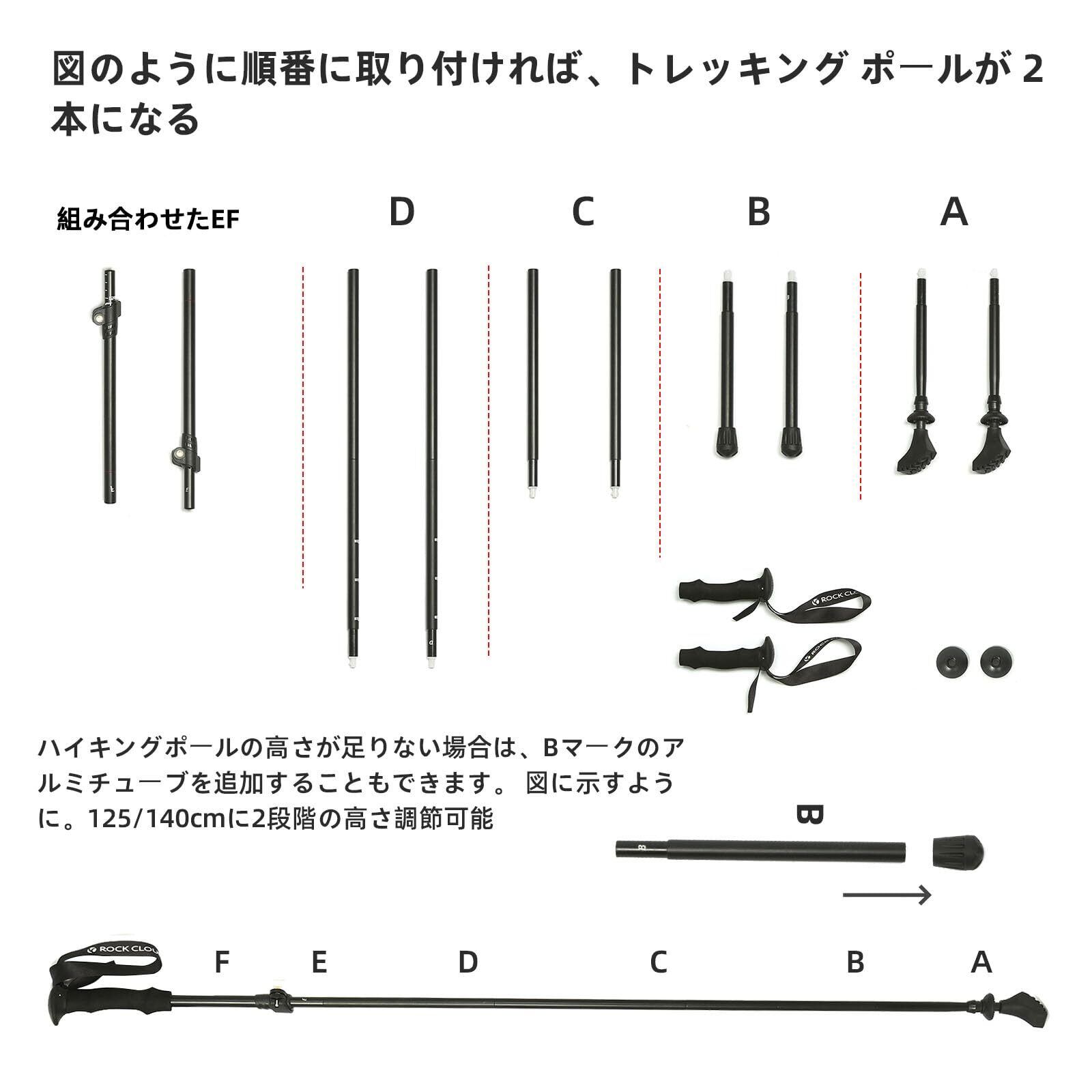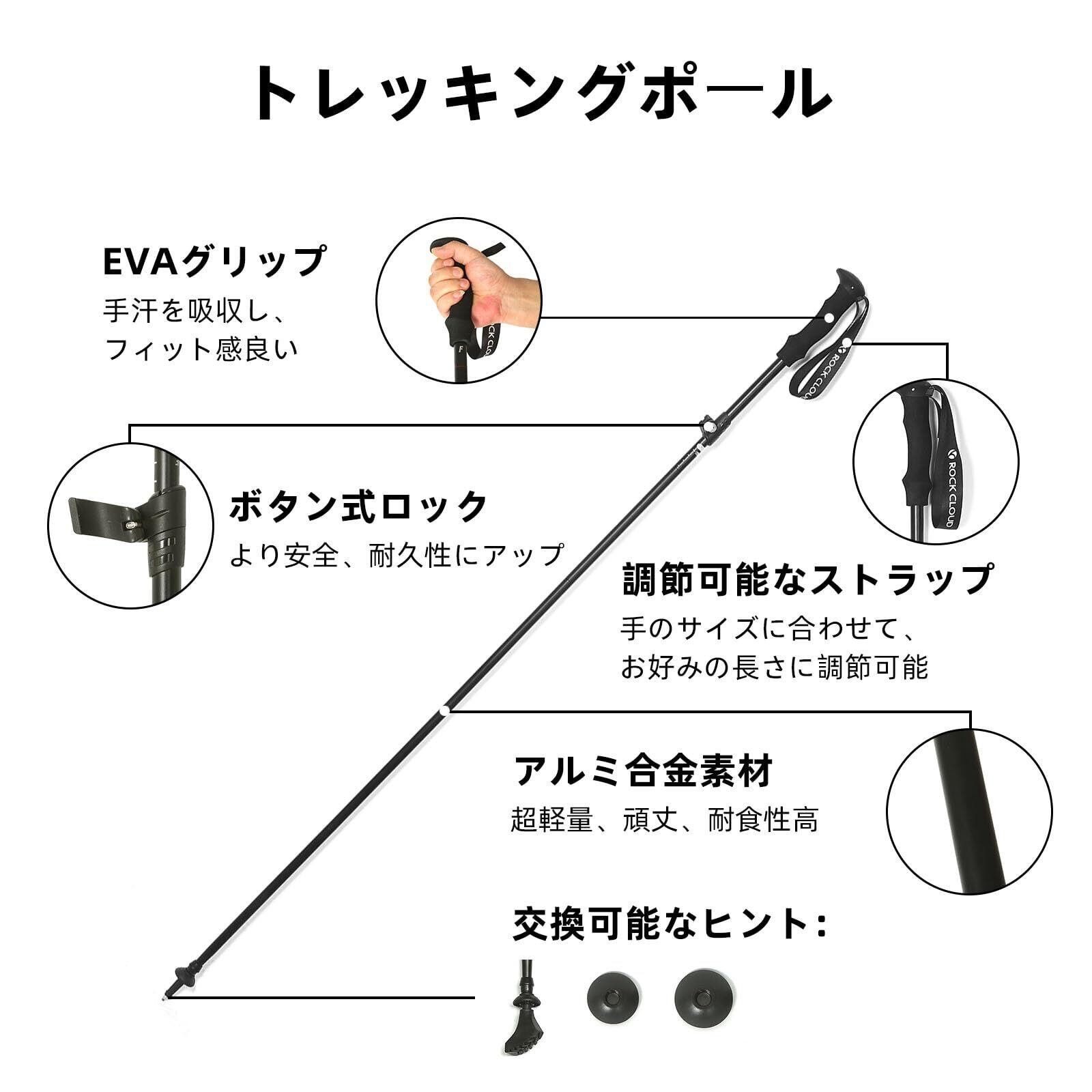 【折りたたみ式登山杖】男女の身長差に対して、好みの長さに合わせて125cmと140cmに2段階の高さすることができます。高品質のアルミニウム合金素材で、非常に強度が高いです。 人間工学に基づいたEVAグリップは手のひらにフィットして使いやすさ抜群!