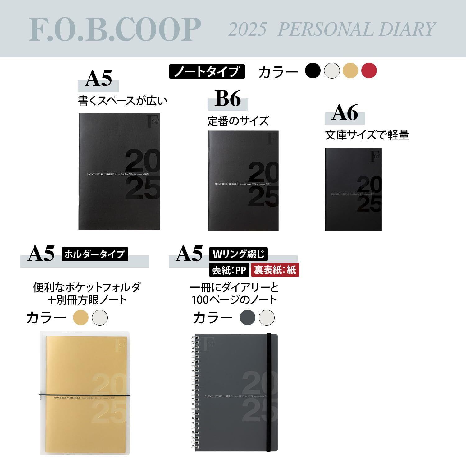 キョクトウ 手帳 2025年 2024年10月始まり FOBCOOP B6 マンスリー 黒 PBF75K25