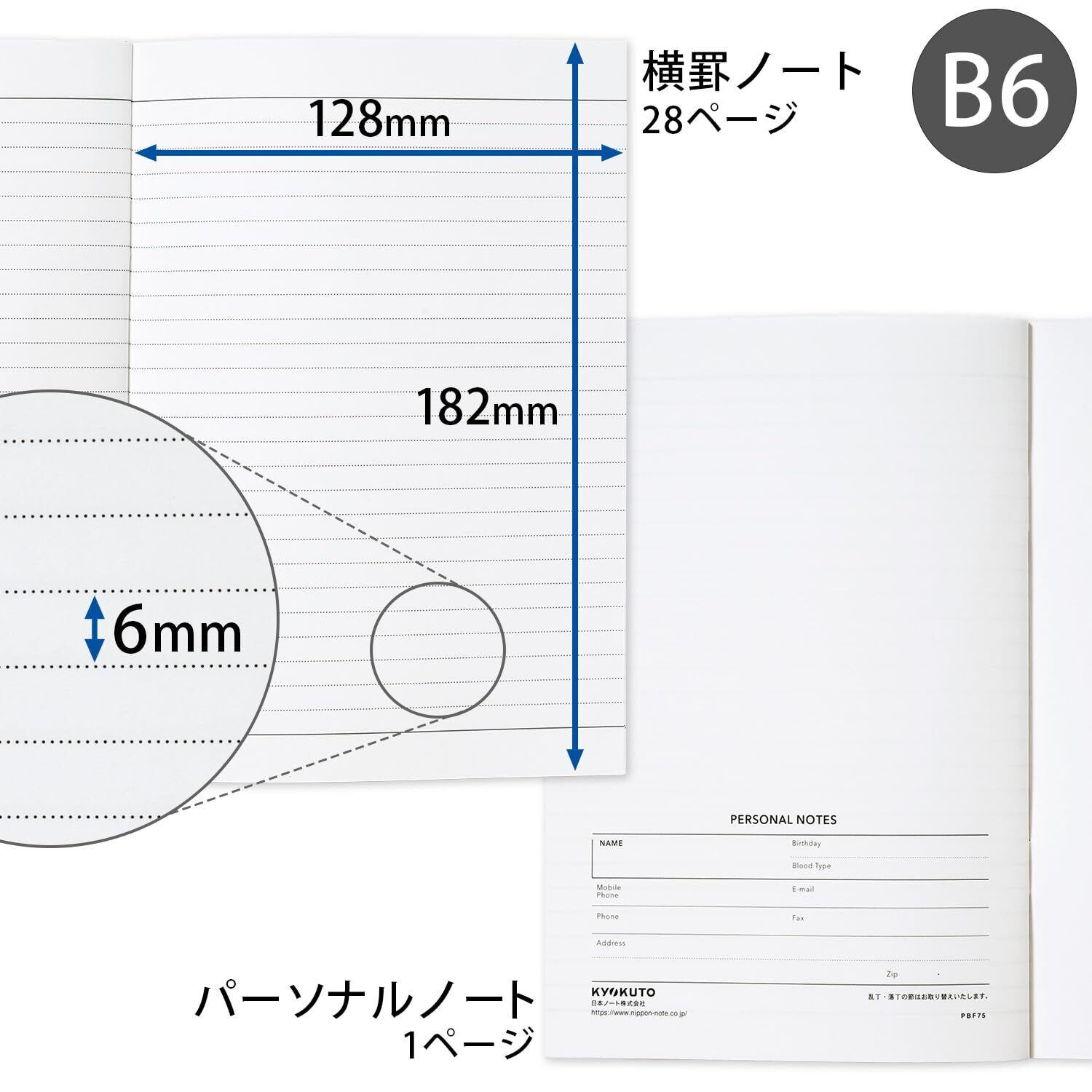 6㎜横罫のノートページも28ページ入っており、メモ書き等もしっかり記入可能となっております。