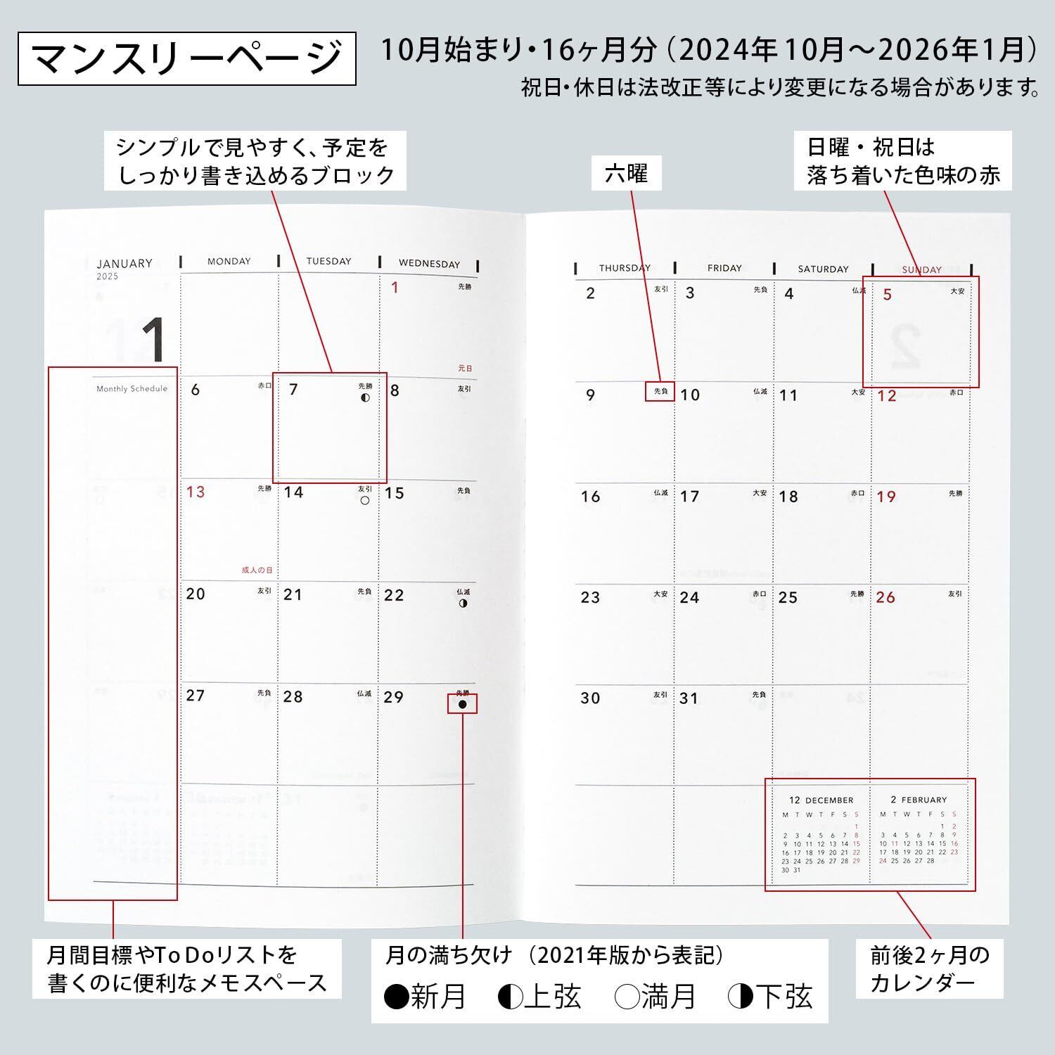 掲載期間:2024年10月~2026年1月/六曜表記/月曜始まり