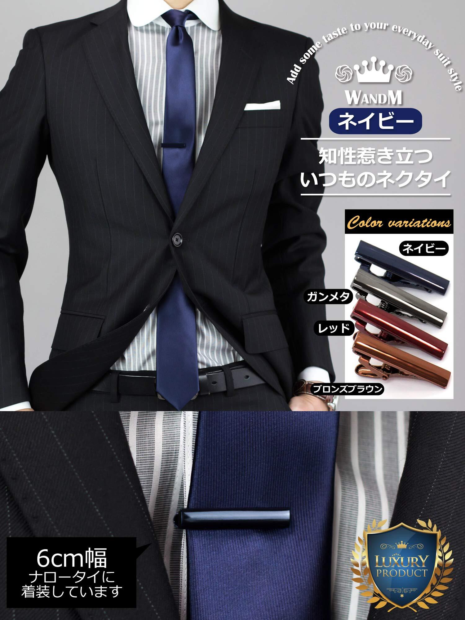 (ウァンダム) WANDM ナロータイ 用 短い ネクタイ ピン 3.3cm ネイビー 紺