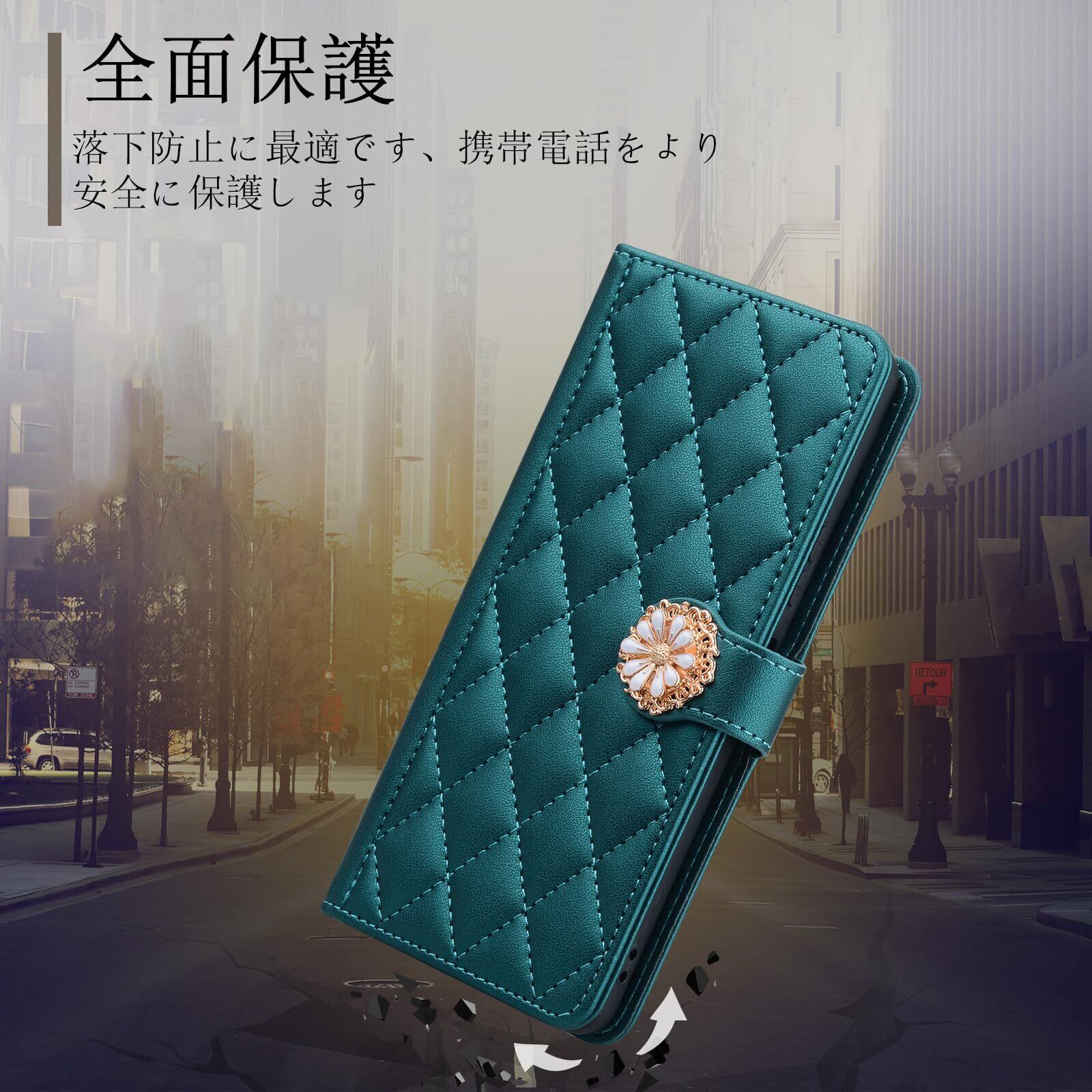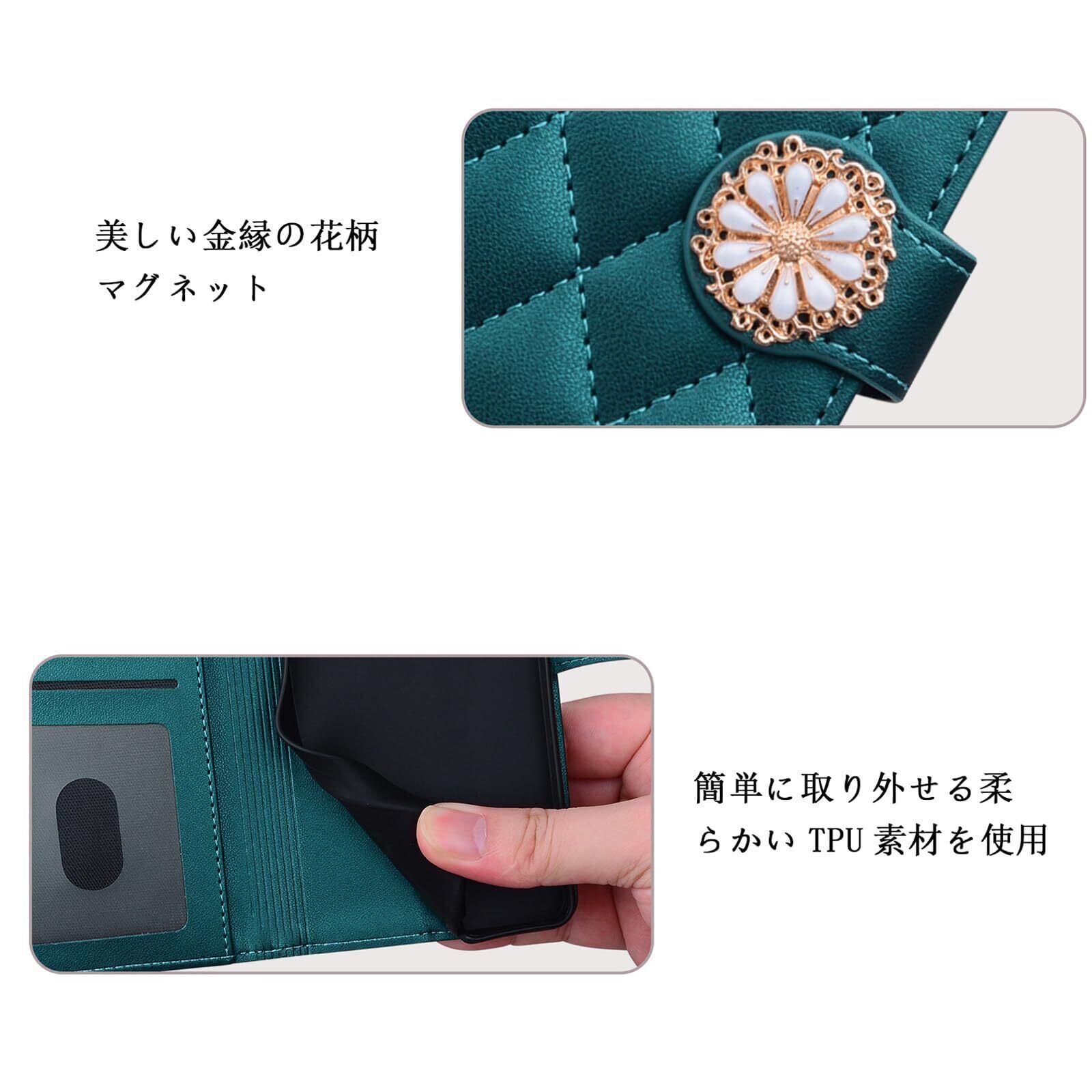 スタイリッシュなデザイン:グーグルピクセル9 ケース 手帳型には、シックなダイヤモンド格子状の刺繍ステッチ、ゴールドとホワイトのマーガレットフラワーのような装飾が施されたマグネットクラスプ、同色のショートストラップが付属しています。 ヴィンテージでエレガント、どんなシーンにも、どんな人にも似合う。