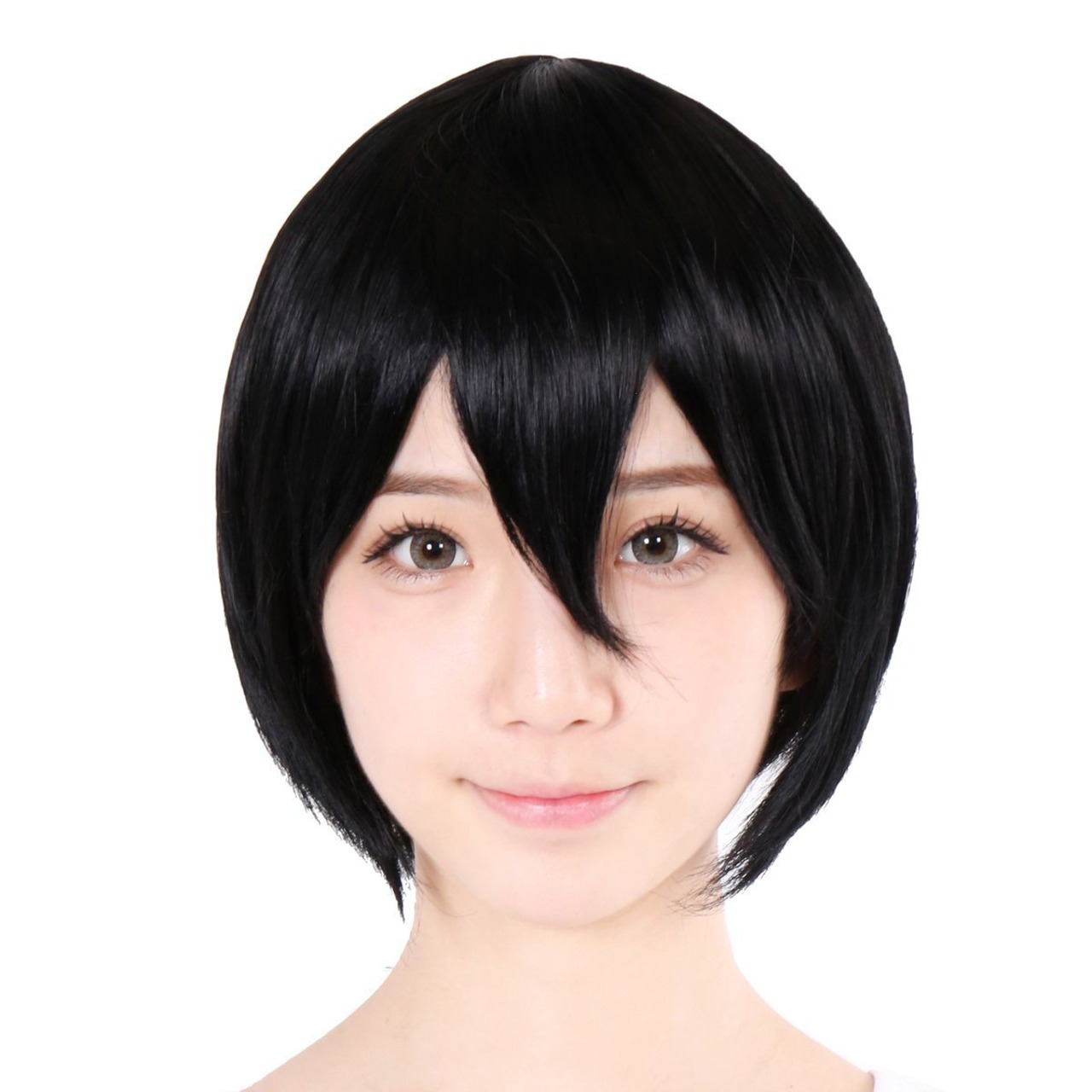 [富士達] ウィッグ ショート コスプレ フルウィッグ ボブ 男装 ウイッグ ストレート 毛量 多め 黒 黒髪 ブラック 耐熱 かつら ネット付き E02-1