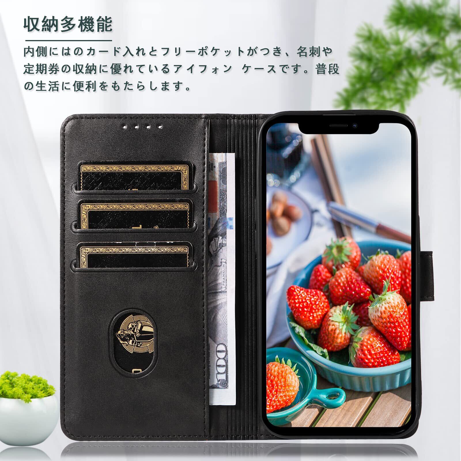 【カード収納】:アイフォン 手帳型ケースの内側にはカード入れのポケットが付くため、カード類や紙幣 、名刺、免許証などを入れることができ、日常の生活に便利です。なお、入れすぎるとふたが閉じづらくなりますので、ご注意くださいませ。