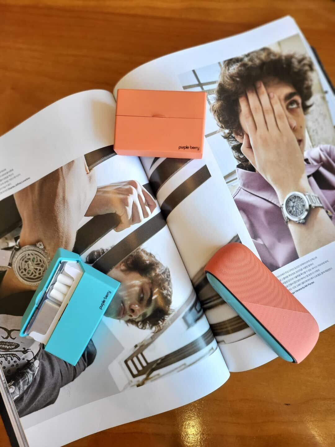 使いやすさ:タバコスティックボックスのビニールをはがしてパープルベリーケースに入れるだけ!フタとタバコ箱のフタが一体となって開かれる一体感抜群の構造です。ふたが落ちる心配はありません。
