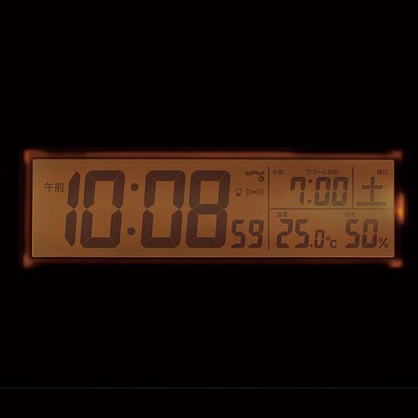 スヌーズつき、アラームモニター機能、常時点灯(アラームセットで点灯)、ライトつき