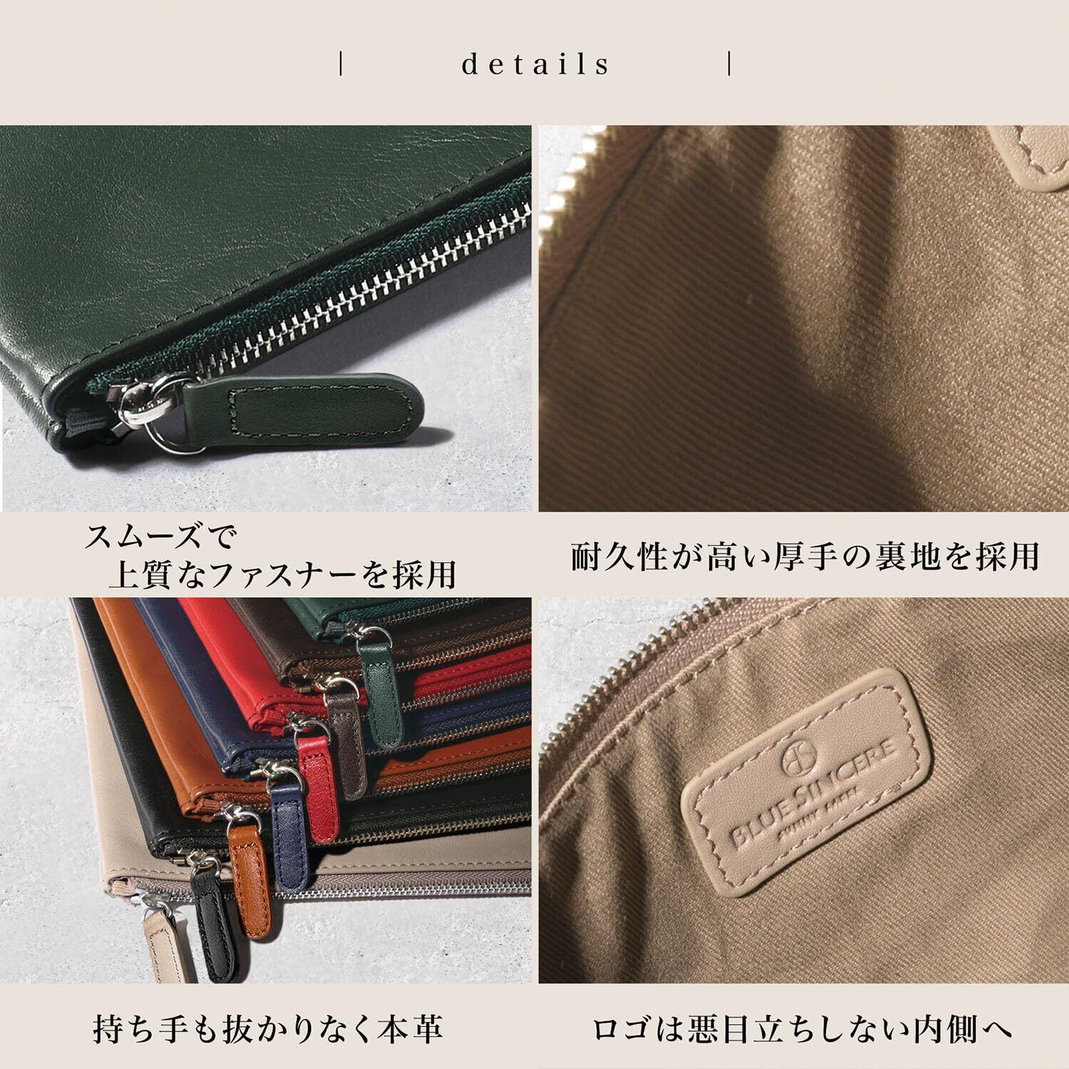 【 お使いのポーチ、こんなお悩みありませんか? 】 「素材が合皮だからすぐに劣化してボロボロになる…」「100均のポーチを使っているけど、使うたび気分上がるポーチに変えたい」こんなお悩みありませんか?化粧ポーチやトラベルポーチなどいつも使うものをピッタリ持ち歩くのはとても気持ちが良いものです。また、ビジネスシーンでもトートバッグからポーチを出した時に恥ずかしくないよう本革製のBLUE SINCEREポーチ(Mサイズ)をオススメします。