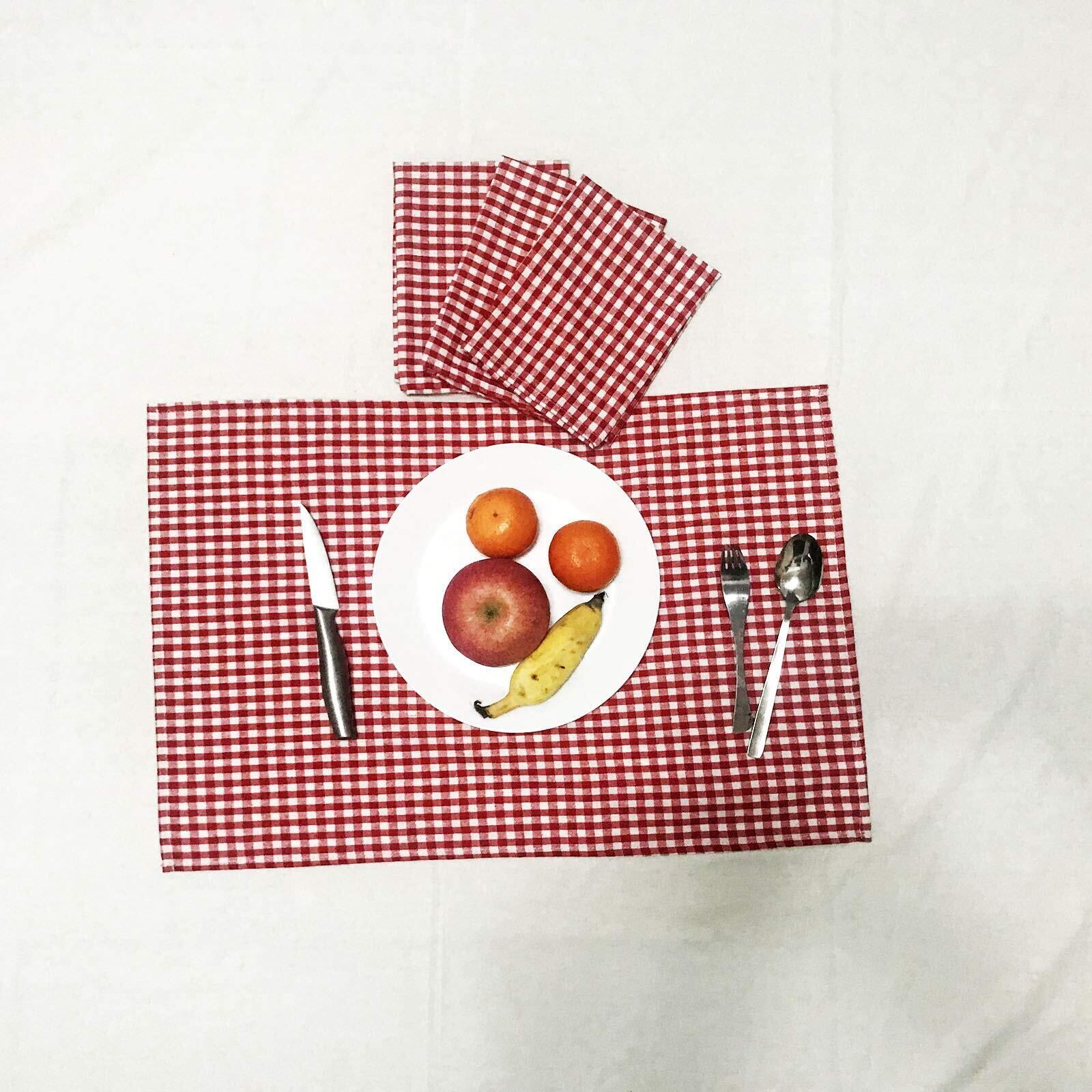 Sourcemall リネンナプキン ランチョンマット 滑り止め テーブル 食事マット 40x60cm ランチクロス 保育園 幼稚園 小学校 男の子 女の子 おしゃれ 4枚組 (チェック柄 レッド) | BASE SHOP