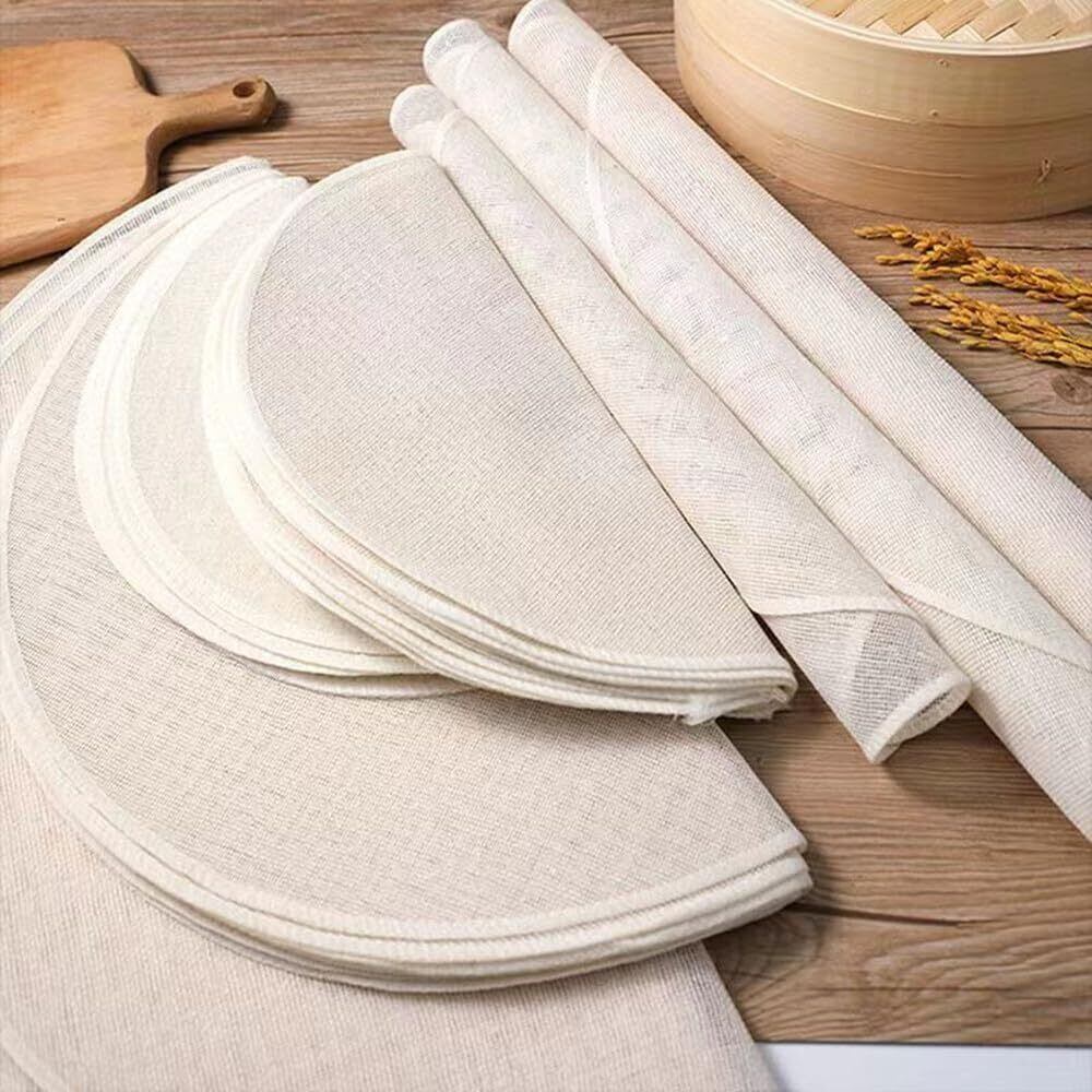 ILLIDAN 蒸し布 綿100% 直径18cm/20cm/22cm/24cm/26cm/28cm/30cm/32cm/50cm 5枚 蒸し器用 蒸しシート せいろ セイロ 食品用製蒸し布 耐熱シート 耐熱耐久 繰り返し使用可能 水洗い可能 調理用紙 (丸型32CM)