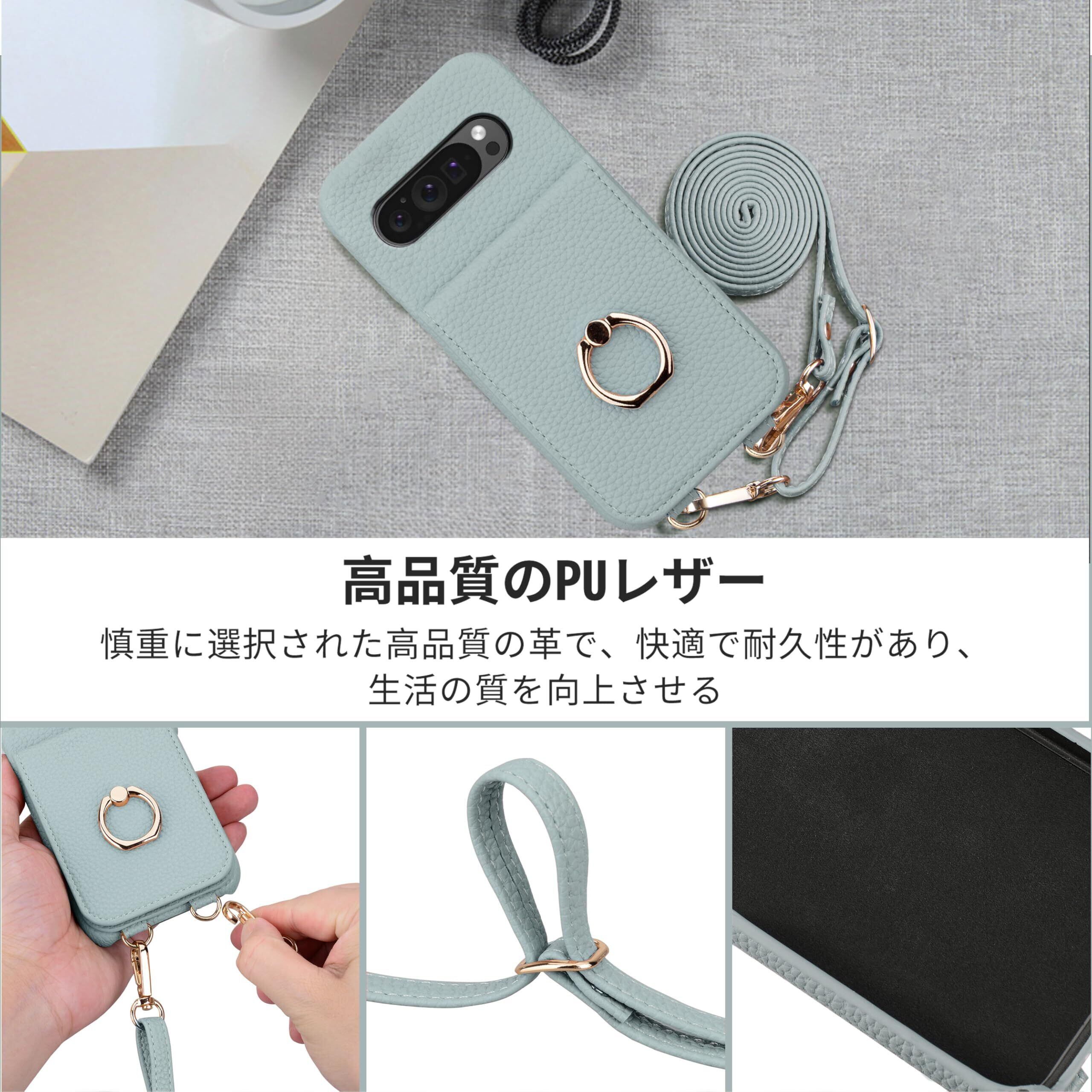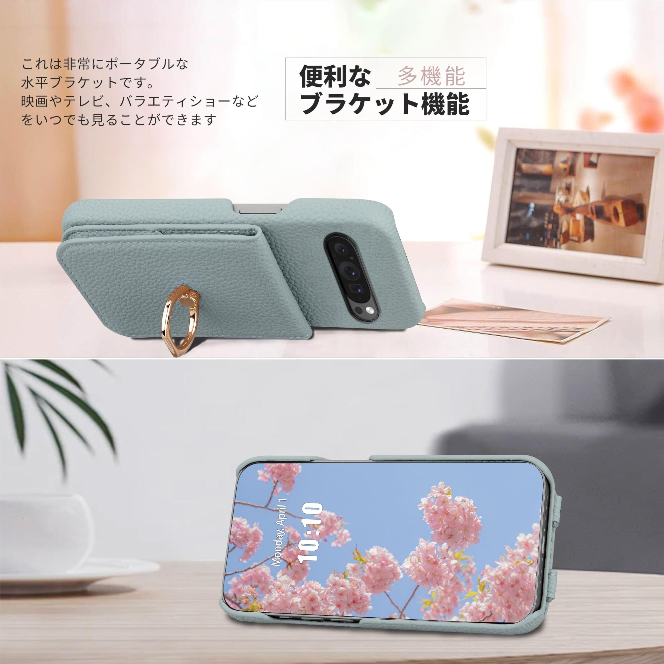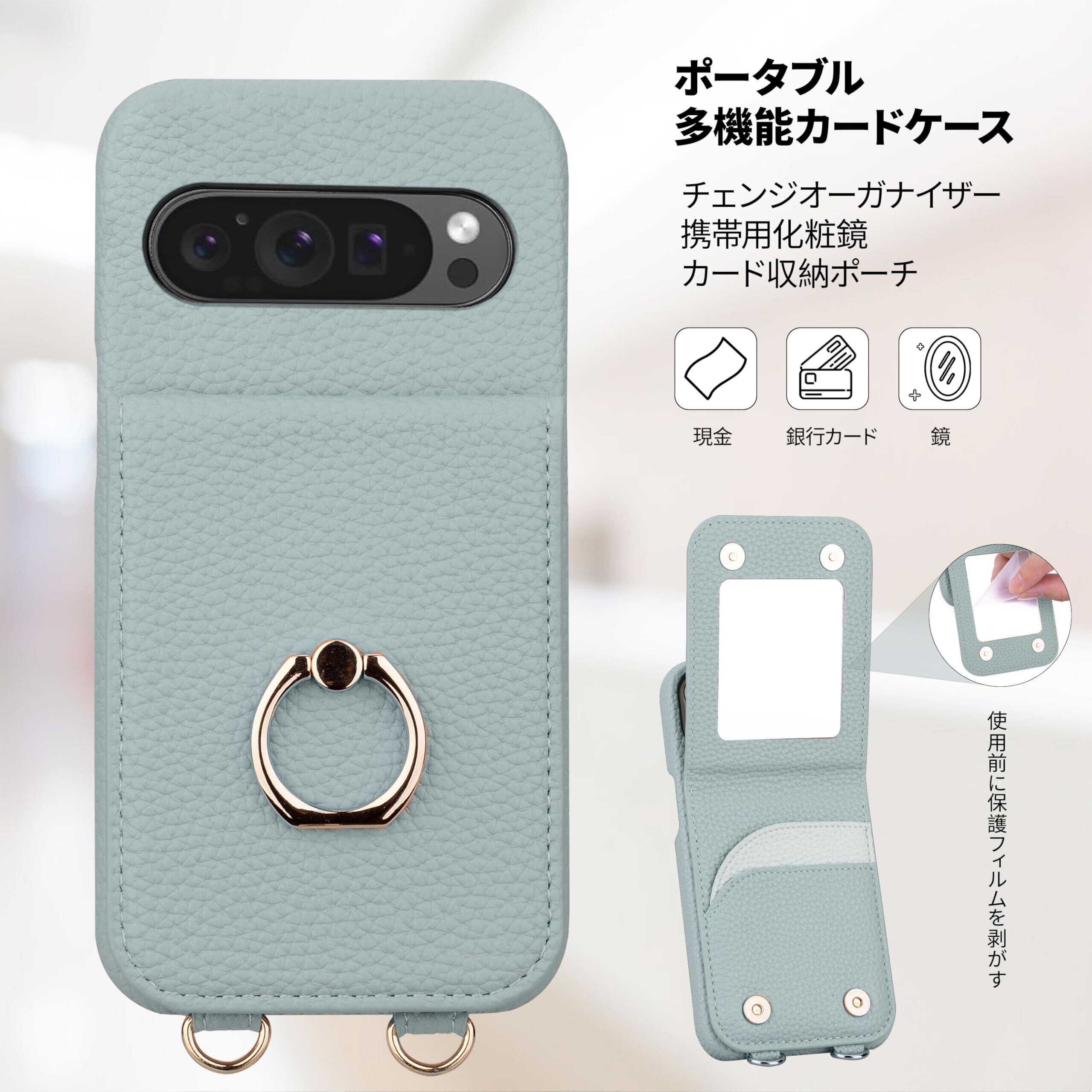 For Google Pixel 9/9 Pro ケース 手帳型 グーグルピクセル9 ケース ショルダー Google Pixel 9 カバー 手帳型 Googleピクセル9 Pro ケース 肩掛け 斜め掛け(長さ調整可能) 背面カード収納 化粧鏡付き スタンド機能(リング付き) Pixel9 ケース ミラー付き (オータムブルー)