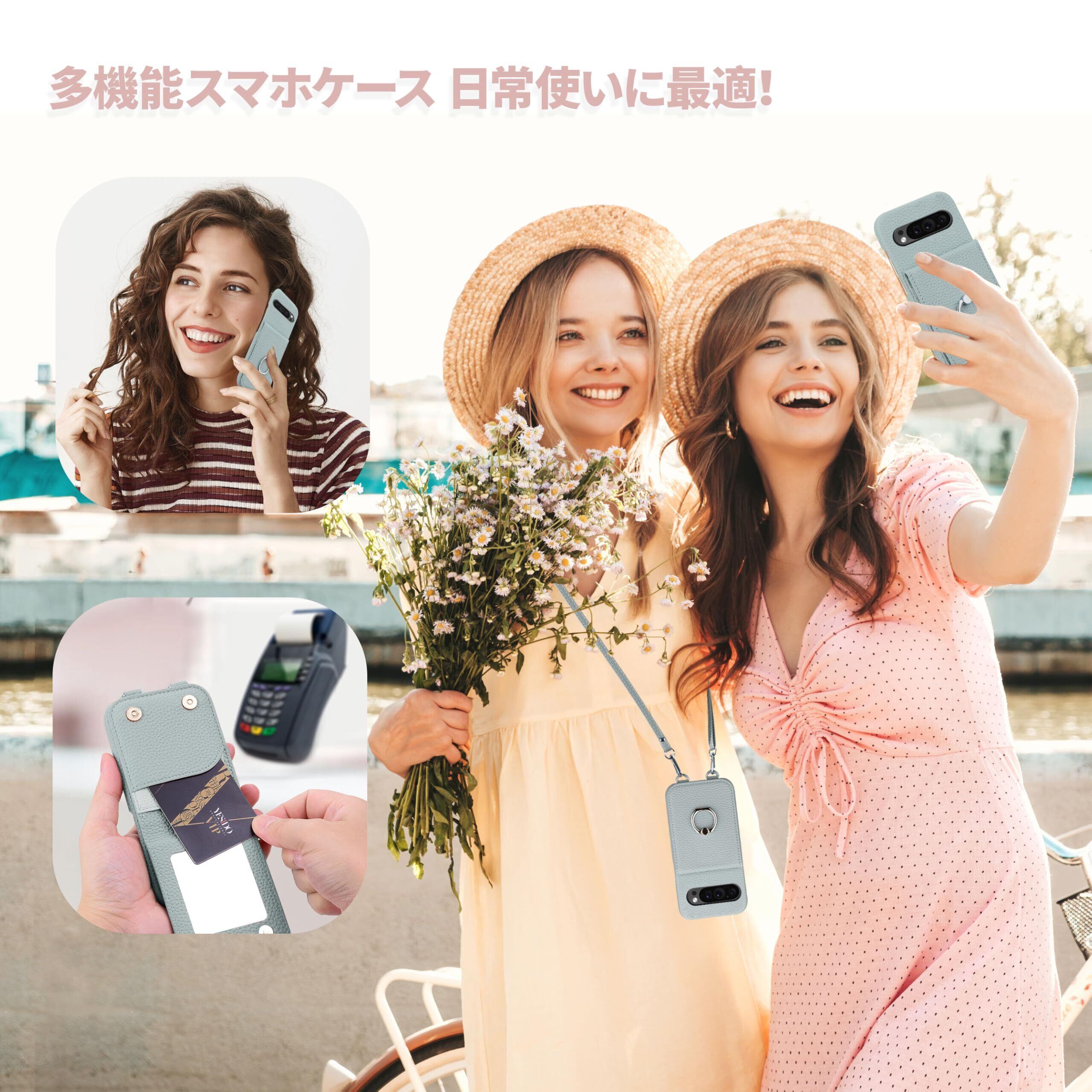 【便利なストラップ付き】ショルダーストラップは調節可能で、斜め掛け、肩掛けが可能。ショルダーストラップはデコラティブなだけでなく、スマートフォン使用時の落下防止にもなります。ショルダーストラップの長さは調節可能で、デイリー、お出かけ、ショッピングに適しています。