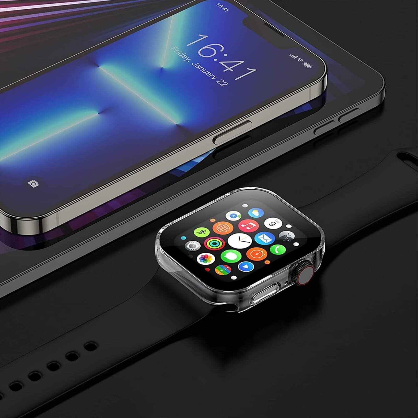 YOFITAR for Apple Watchケース 2 in 1防水設計 45mm 44mm 41mm 40mm Series 9/8/7/6/SE/5/4 アップルウォッチ 用 保護ケース 強化ガラスフィルム 一体型 メッキ加工 3D直角エッジデザイン PC素材 高タッチ感度 全面保護 衝撃吸収 (Series 9/8/7,45mm,クリア)