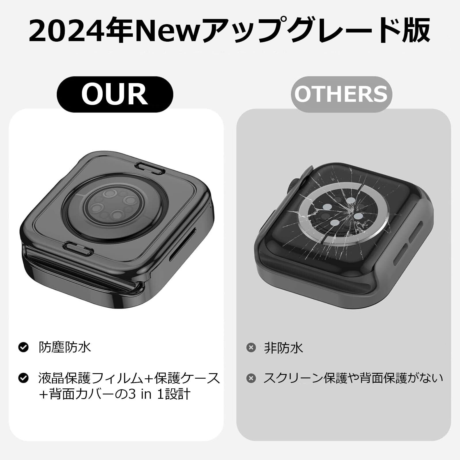 【2 in 1防水設計】Apple Watch前面ケースと背面カバーの2 in 1全周保護設計で、表面から裏面まで360度しっかり守ってくれる、革新的な一体式で防水力も抜群!!!通勤、水泳、スポーツなど多場所適用です。