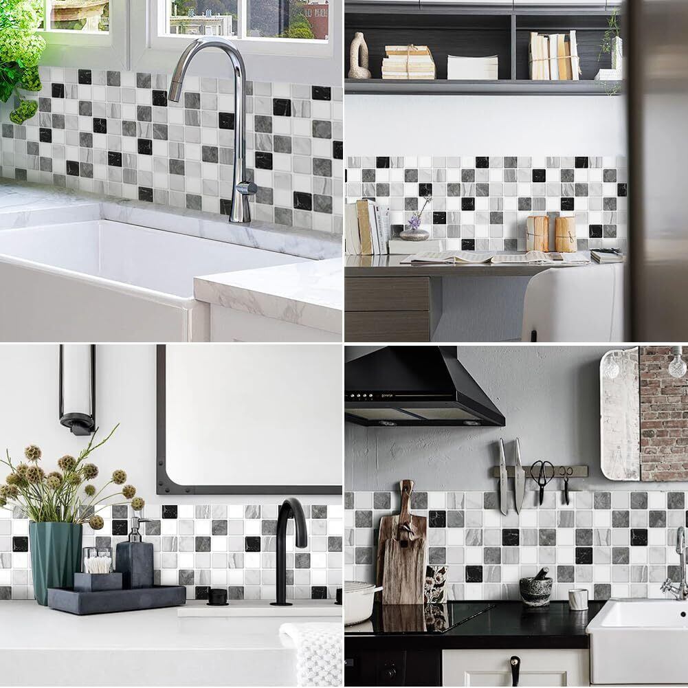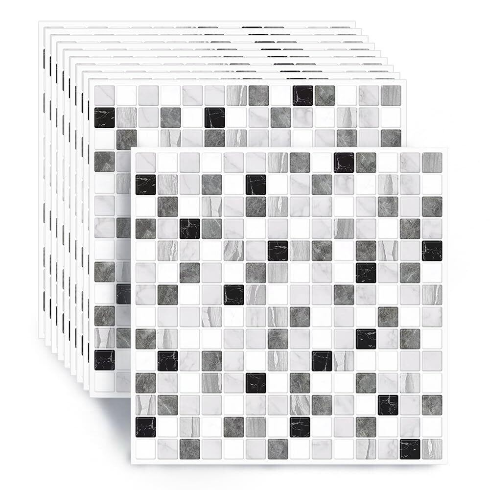 タイルシール タイル 壁紙 シート 汚れ防止 リメイクシール 耐熱 防水 水回り 壁面 DIY キッチン 洗面所 リメイクシート カッティングシート 10枚 タイル柄シール モザイクタイル柄 模様替え 壁紙 (HB-03)
