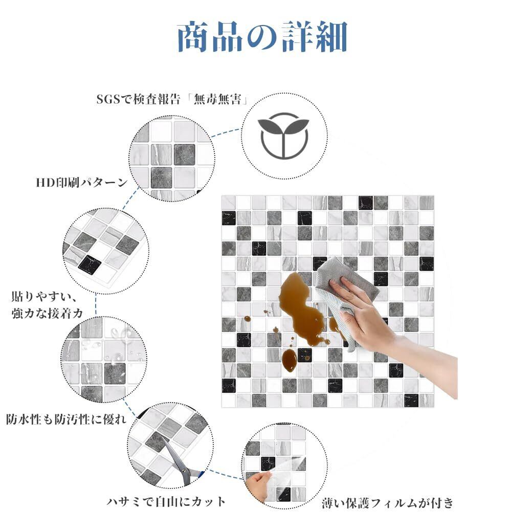 内容:10枚セット、一枚のサイズ:約30cmx30cm、厚さ:約0.5mm、材質:PP+PET※3D立体風ですが、実際はプリントされているので平面となります。 ※剥がした後にベタベタ感が残ります。ご了承の上ご購入下さい。 マスキングテープを下地に使うと綺麗にはがせ賃貸などでも安心して使用できます。