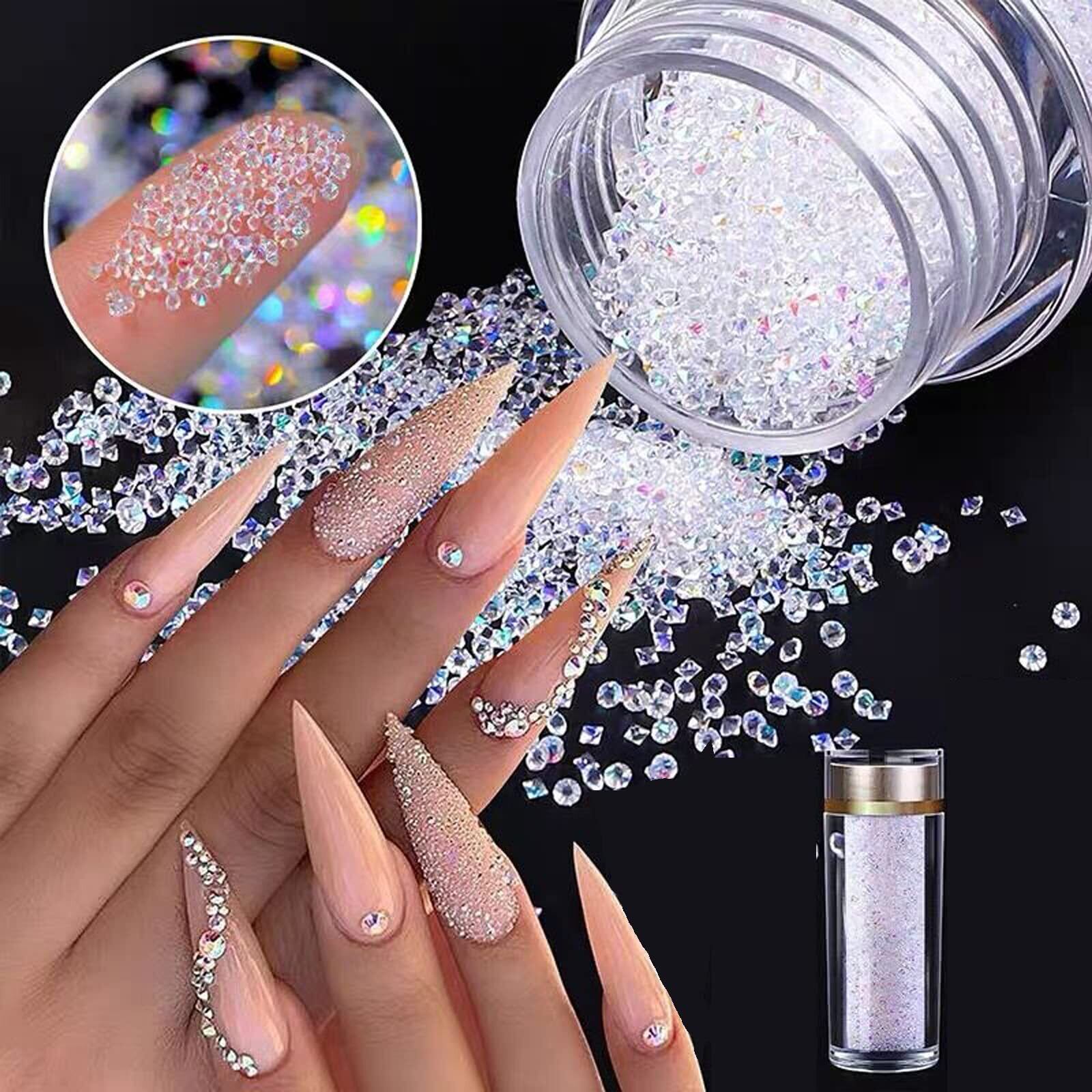 【良質な材料】これらの微小なネイルダイヤモンドは、爪の自然な色を残しながら虹のような光沢を放つ非常に硬く透明な良質な材質で作られています。