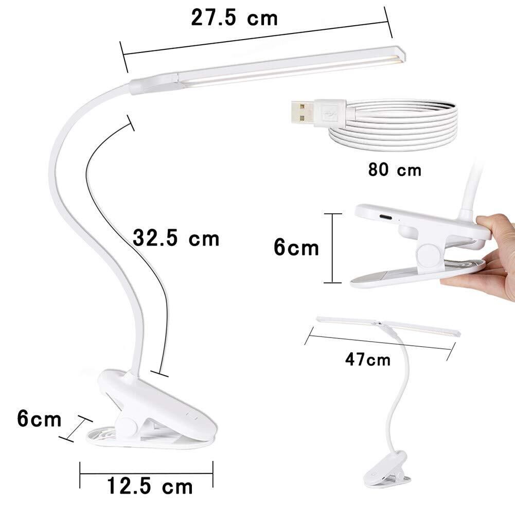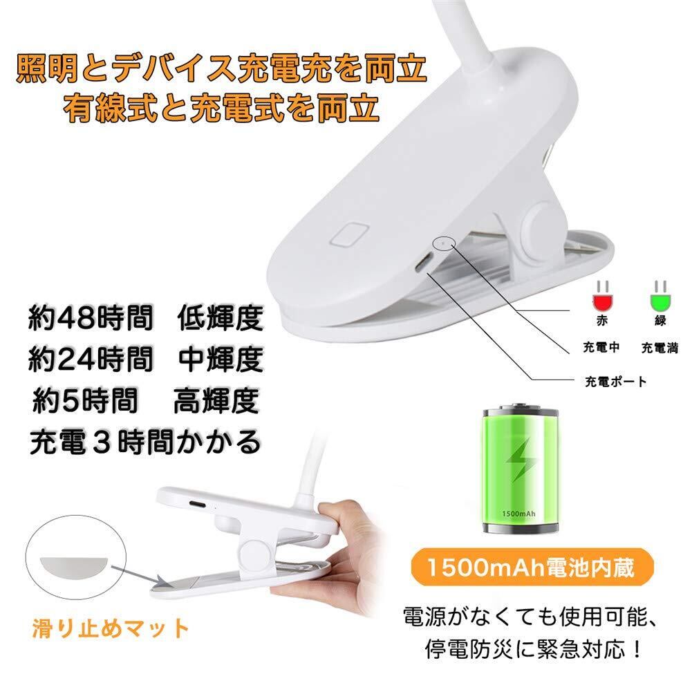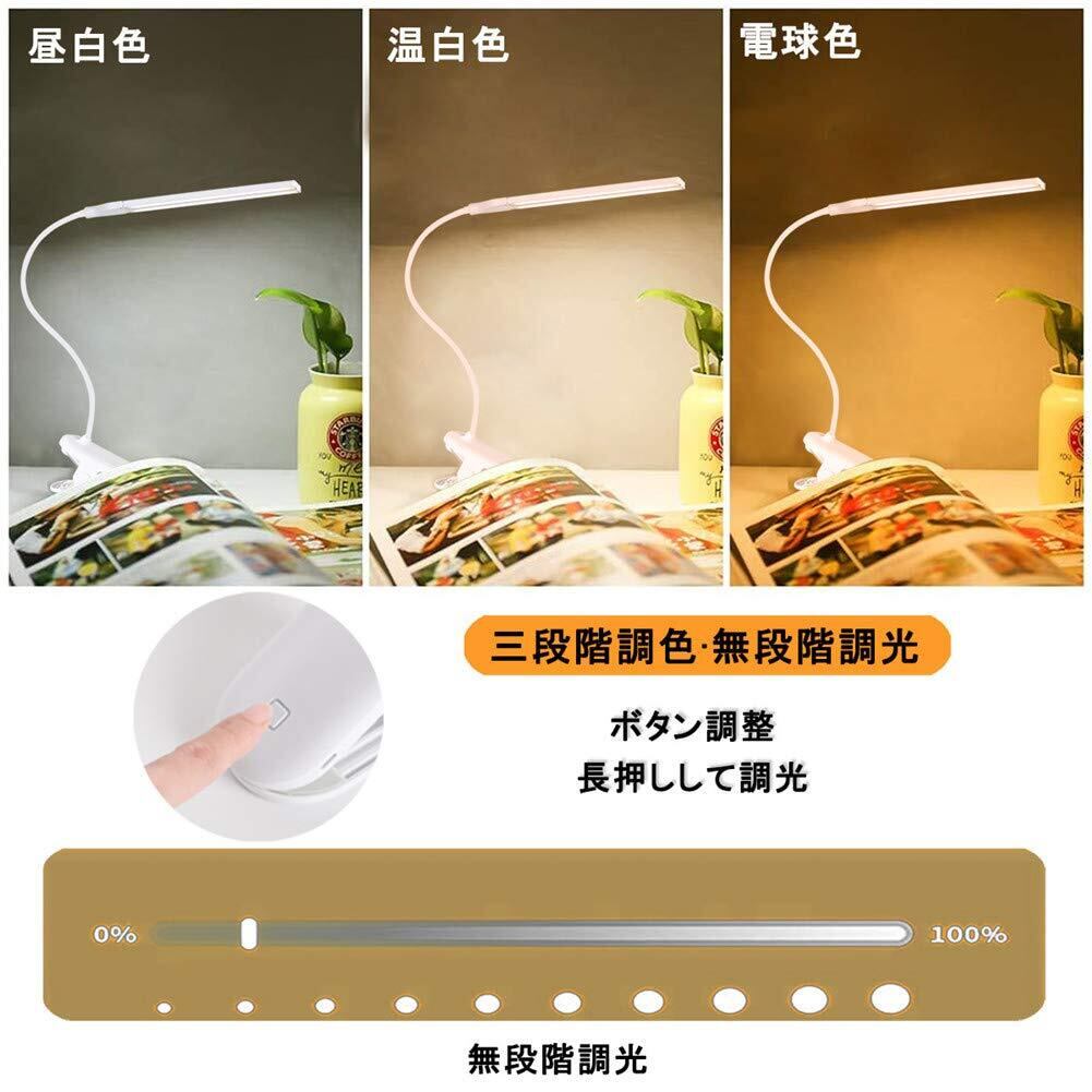 クリップライト led デスクライト 目に優しい 明るい デスクスタンドライト コードレス 卓上ライト おしゃれ ブックライト クリップ 読書灯 ベッド テーブルライト 3段階調色 無段階調光 電気スタンド USB充電式 省エネ 360°回転 (ホワイト)