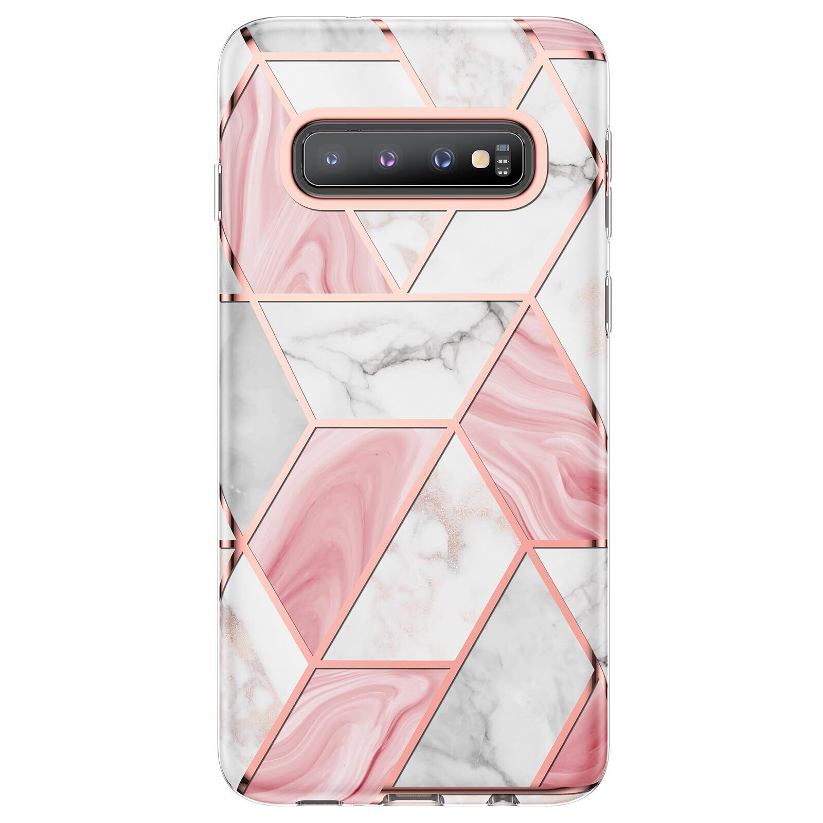 MuZiF Samsung Galaxy S10E 用 ケース 全面耐衝撃 米軍MIL規格 全面カバー 硬いメッキ加工 大理風背面 かわい 衝撃吸収 アイフォン S10E 女の子 女性人気スマホケース(Galaxy S10E,ピンク)