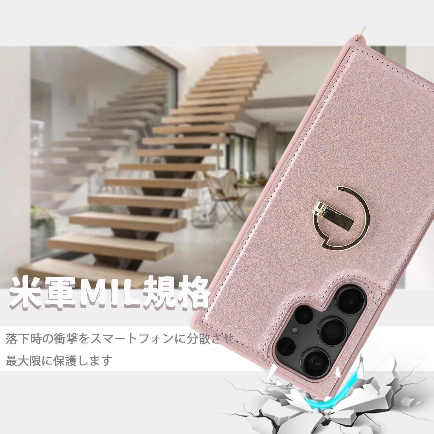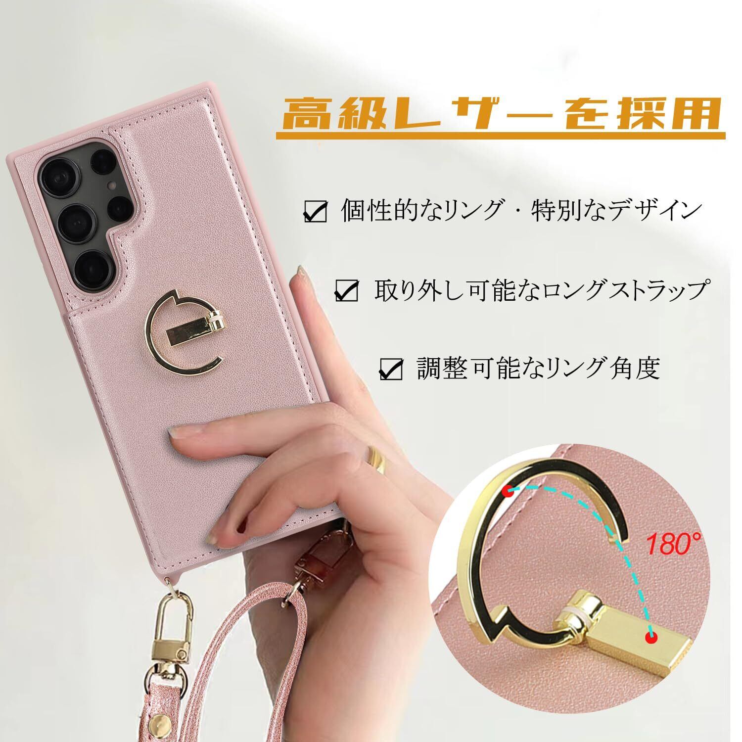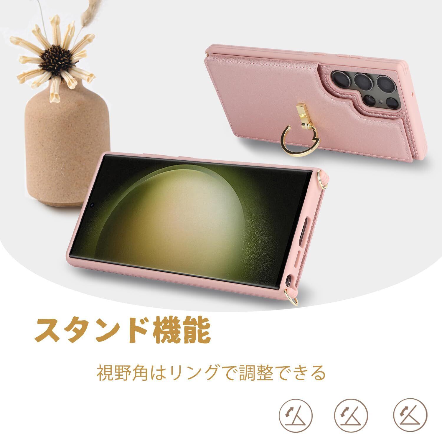 Havaya スマホショルダー Galaxy S23 Ultra ケース ギャラクシーs23 ultra ケース SC-52D ケース スマホケース SCG20 S23ウルトラ ショルダー リング付き レザー 肩掛け カード収納-ローズゴールド