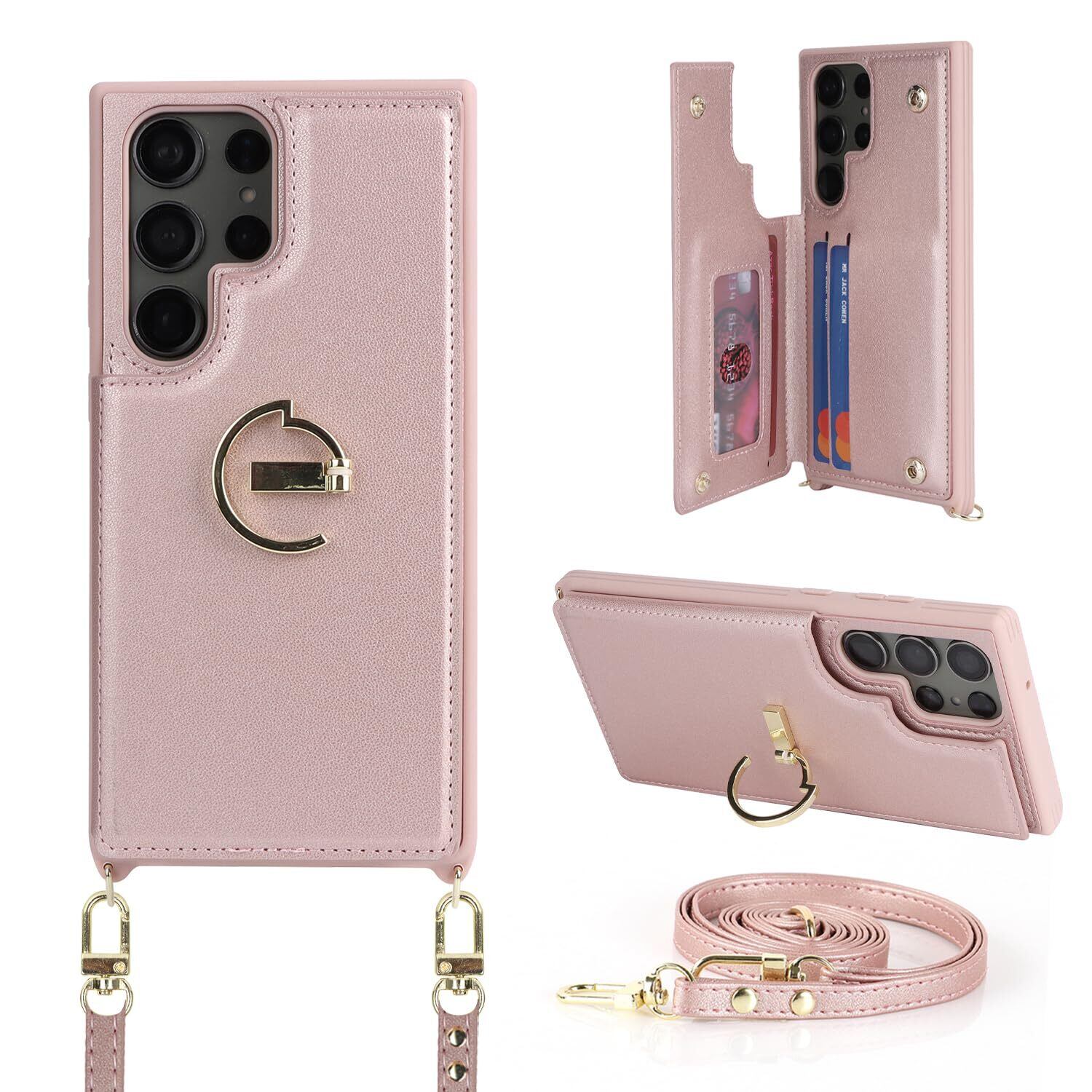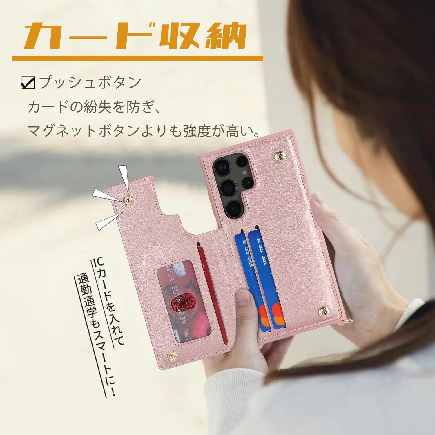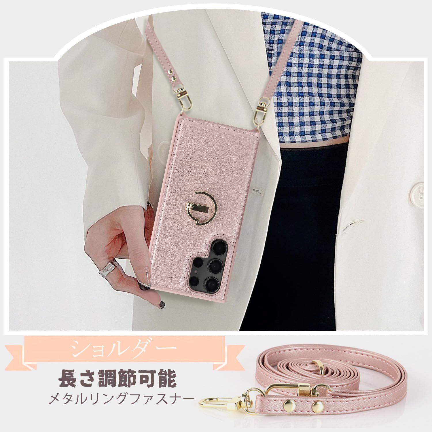 Havaya スマホショルダー Galaxy S23 Ultra ケース ギャラクシーs23 ultra ケース SC-52D ケース スマホケース SCG20 S23ウルトラ ショルダー リング付き レザー 肩掛け カード収納-ローズゴールド