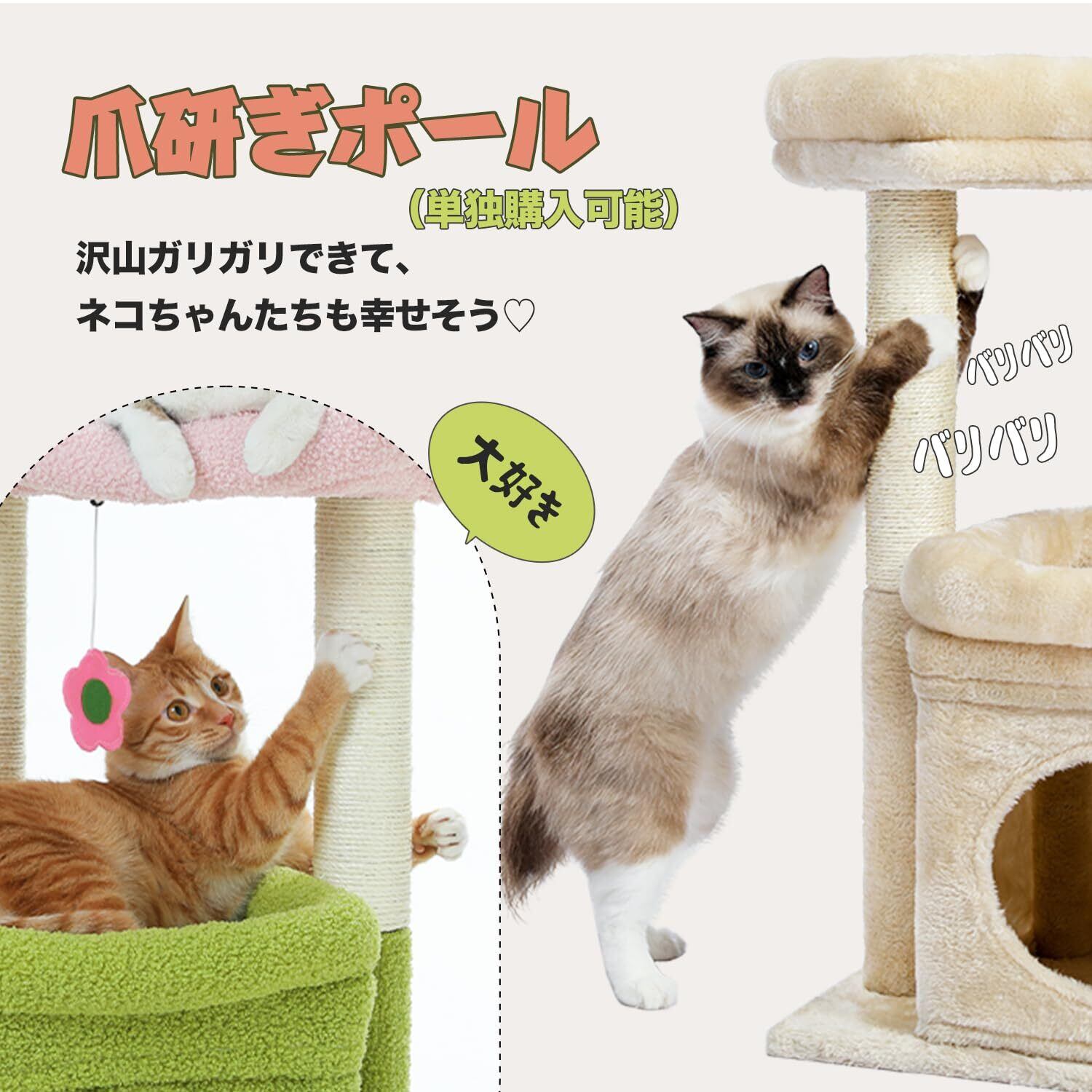 PAWZ Road キャットタワー ミニ 猫タワー 小型 低い 小さめ 据え置き 人気 爪とぎポール 爪研ぎ 麻紐 猫のおもちゃ コンパクト 省スペース 頑丈 安全 猫ハウス 展望台 - 68cm ベージュ