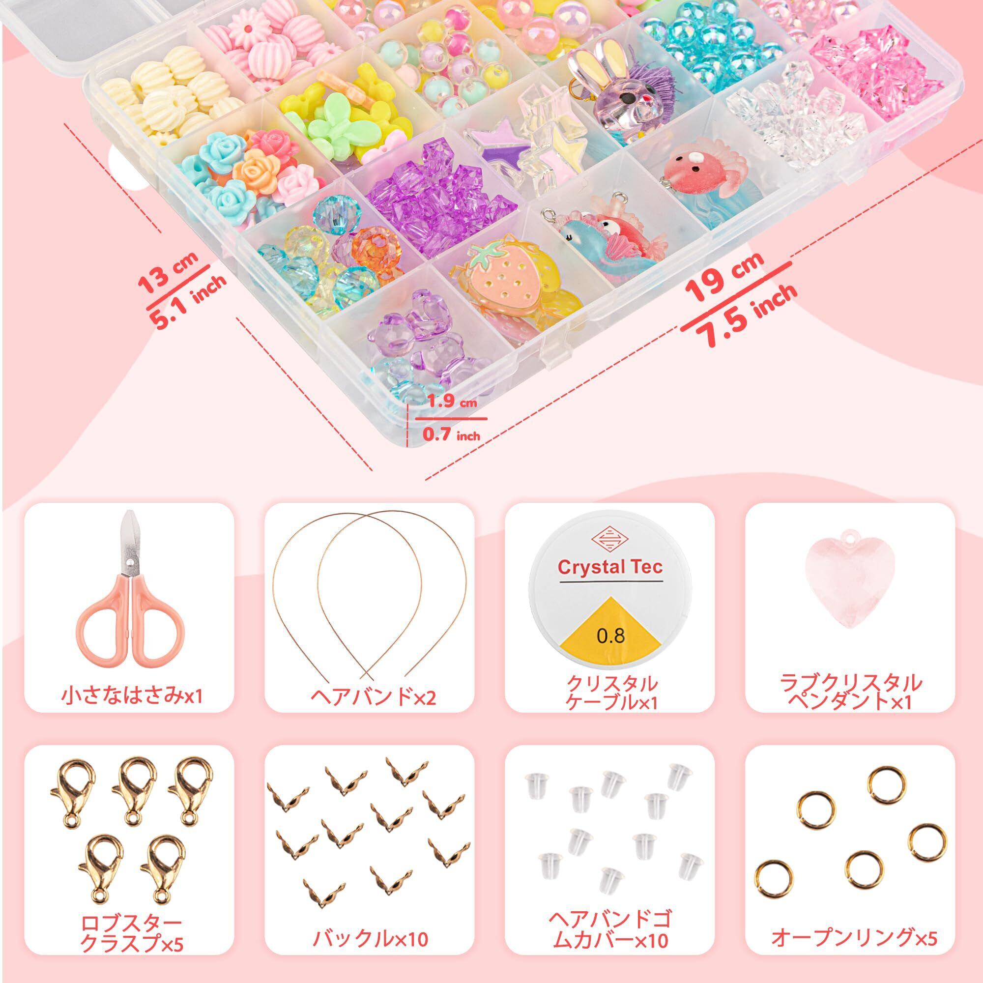 ビーズ 手作りキット 女の子、ハンドメイド パーツ メイキングトイ ガラス ビーズアクセサリーキット、ビーズセット 400個以上、クリスタルバニーシリーズ 透明フロストビーズ、キッズ手作りビーズ、ジュエリー作成ツール付きアクセサリー