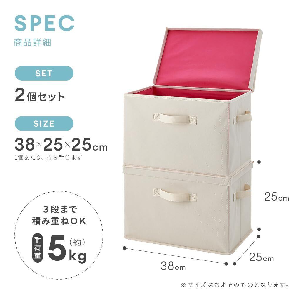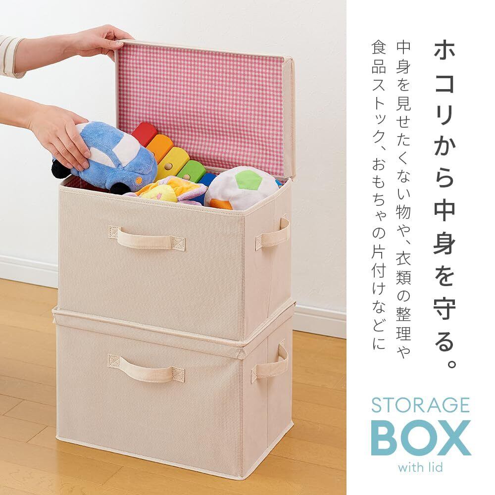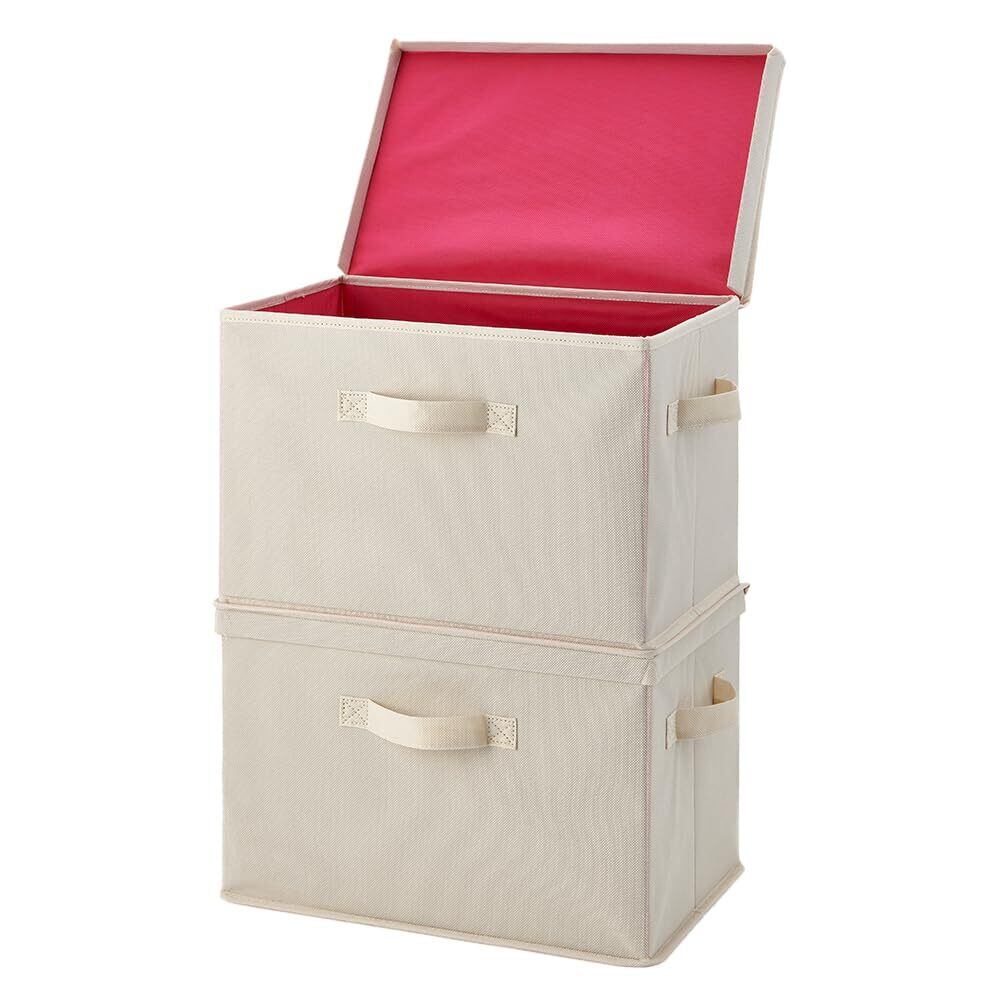 アイメディア(Aimedia) 収納ボックス 2個セット ベージュピンク 折りたたみ フタ付き 不織布 大容量 24L 整理ボックス 収納ケース 衣装ケース 衣類収納 フタ付整理箱 おしゃれ