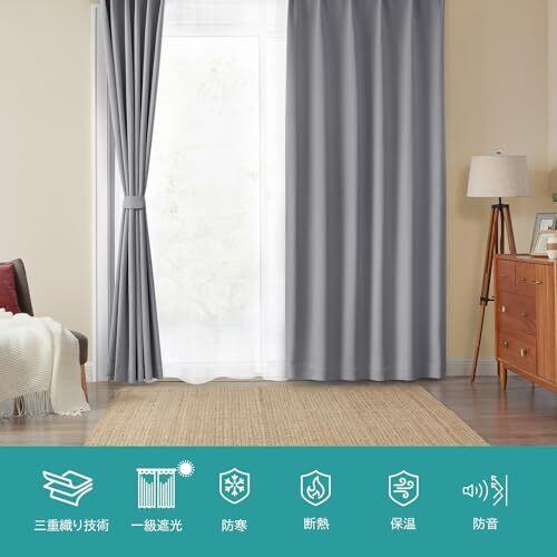 Hansleep カーテン 1級遮光 4枚セット 幅100cm丈220cm ライトグレー 断熱 防寒 防音 省エネ 厚手 無地 おしゃれ 洗える リビング用 (カーテン2枚・レース2枚) | BASE SHOP