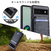 Havaya Pixel 6a ケース MagSafe 対応 グーグルピクセル6a ケース Google Pixel 6a ケース MagSafe 対応 耐衝撃 au 背面 カード収納 docomo [分離式] softbank 取り外し可能 スタンド機能 レザー-ブラック (ヒョウ柄)