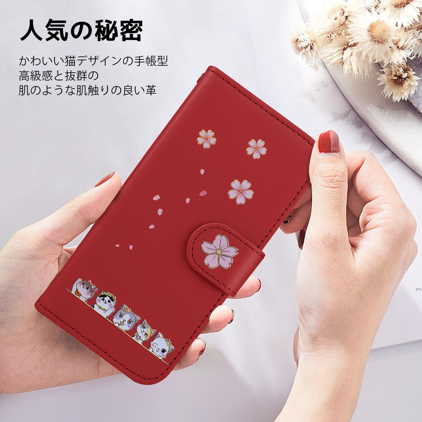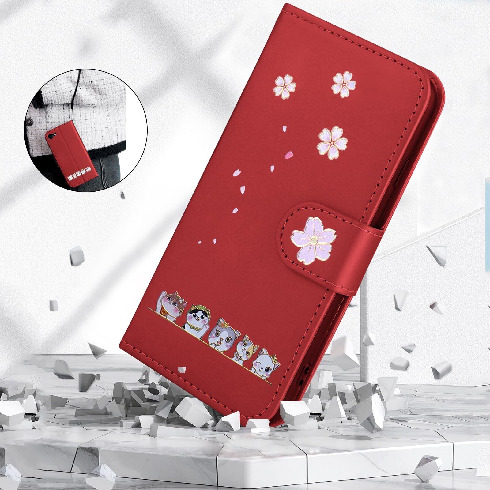 Mldjomid ZTE Libero 5G IV ケース libero 5g iv ケース 手帳型 携帯カバー A302ZT ケース PUレザー 360度保護 子猫のパターン ZTE ソニー リベロ5g iv カバー 財布型 かわいい子猫のパターン 軽量 カード収納 スタンド機能 防塵 libero 5G IV 手帳型ケース(赤)