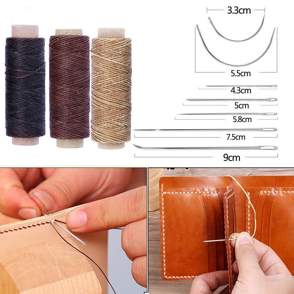 【蝋引き糸】太さ直径1mm 各色長さ:50m。蝋引き済みなので表面の毛羽立ちは少なくすぐに縫い始められ、細かいステッチにも耐える強度があります。蝋引き糸は平紐タイプで通しやすく、手縫いにさいてきです。