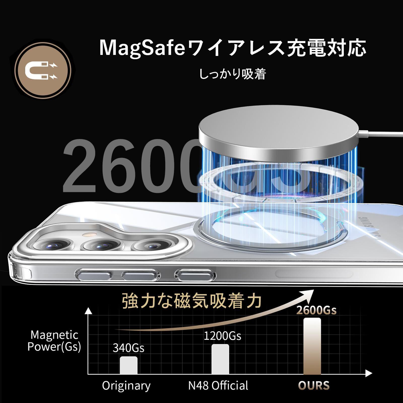 「Magsafe対応」ケースをつけたままマグセーフ機能を快適に使用できます。背面に薄くて強いマグネット内蔵しています、ワイヤレス充電や車載ホルダーやアクセサリとのあらゆる充電に安定で接着ができ、差し込みのいらないより簡単により素早く充電できます。