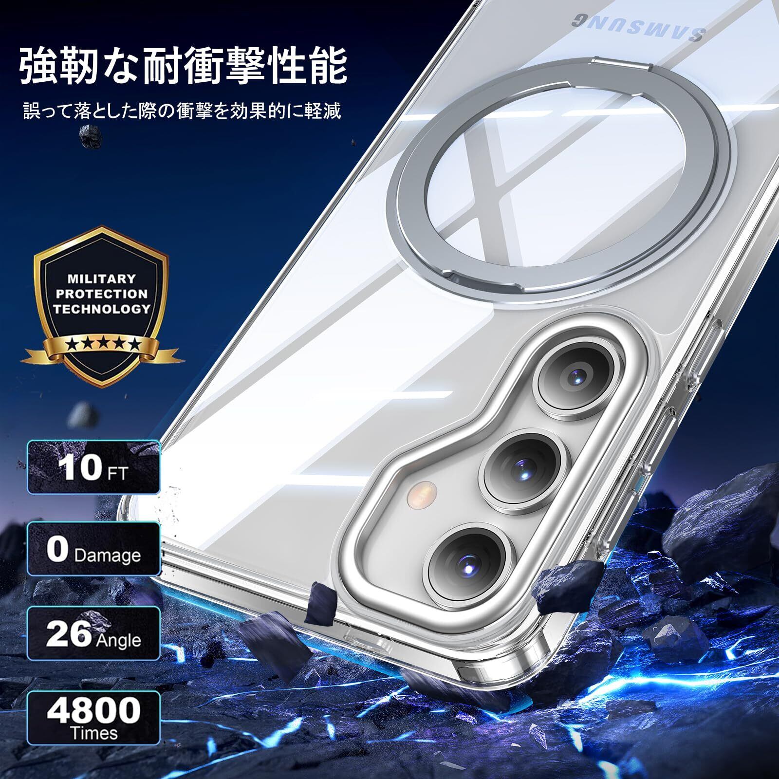 Galaxy S25 用 ケース Magsafe対応 ギャラクシーs25 / SC-51F / SCG31 カバー 360°回転スタンド Uovon スマホケース 携帯ケース ワイヤレス充電 車載ホルダー 対応 ストラップ穴付き 指紋防止 黄变防止 ・ クリア