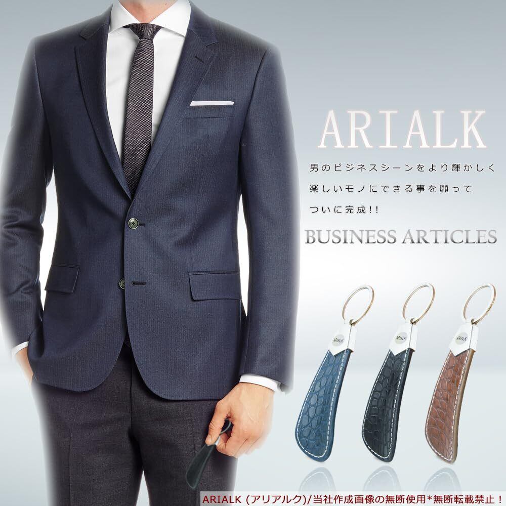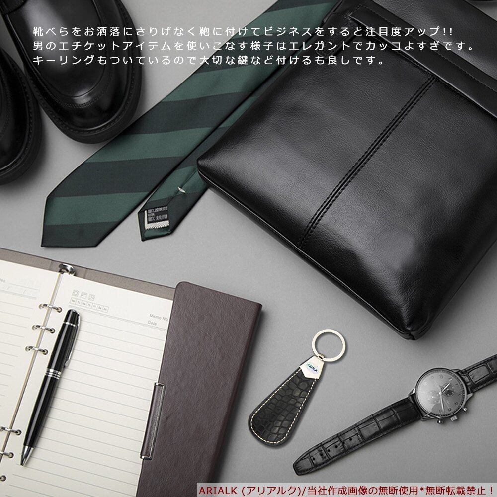 ARIALK (アリアルク) 靴べら レザー 携帯用 ビジネス 革 くつべら 短ヘラ 軽量 キーホルダー 付き 携帯