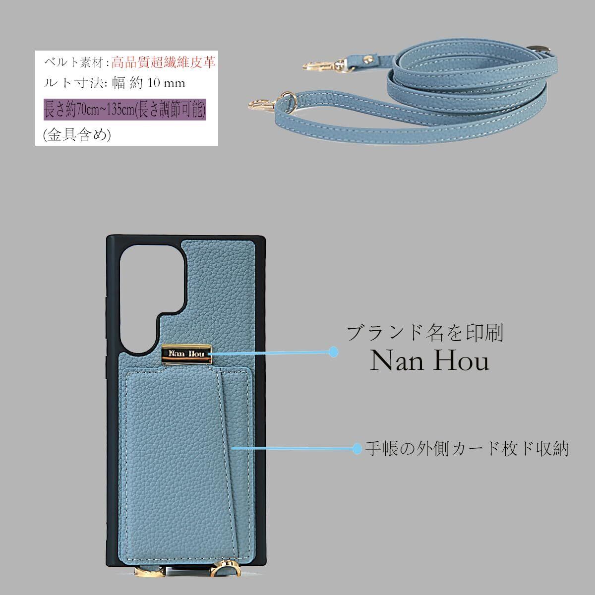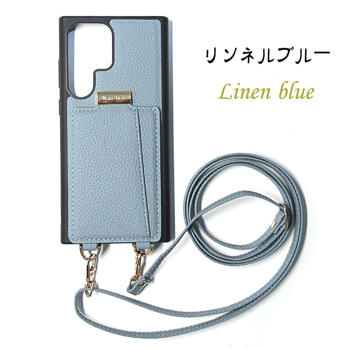 NanHou Samsung Galaxy S24 Ultra ケース 手帳型 高質PU ファッション SC-52E SCG26 手帳型 斜めショルダーストラップ付き(長さ調整可能)耐衝撃 保護 カバー 内蔵 自吸式開閉 マグネット 背面鏡付き 人気 携帯 SC-52E カバー 女性 上品 カードポケット スタンド機能 SCG26 ケース - リンネルブルー