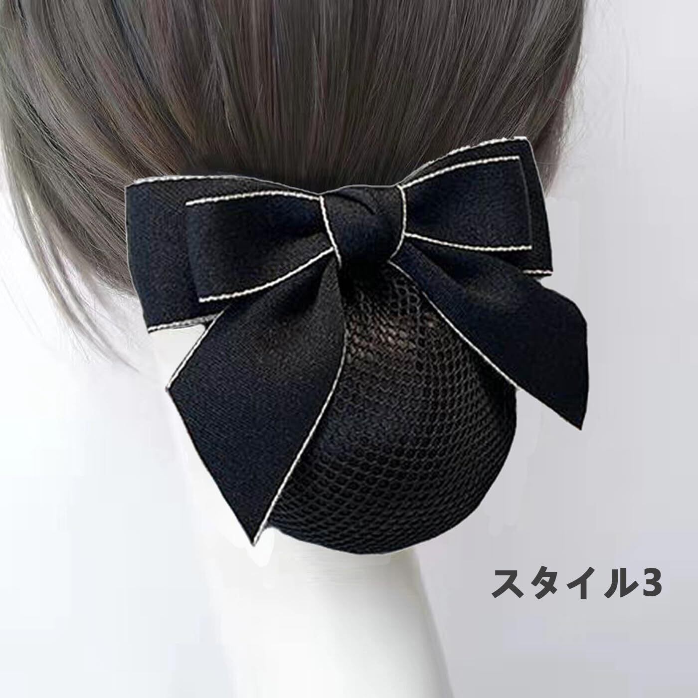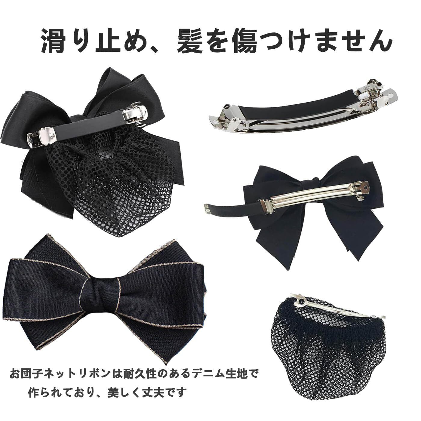 3個セット シニヨンネット バレッタ ネット付き,BetterJonny リボン付きネット ヘアネットリボン おだんご ネット 髪 お団子ネット 髪 ネット 黒 大きめ おしゃれ かわいい レディースヘアアクセサリー 黒 ブラック リボン