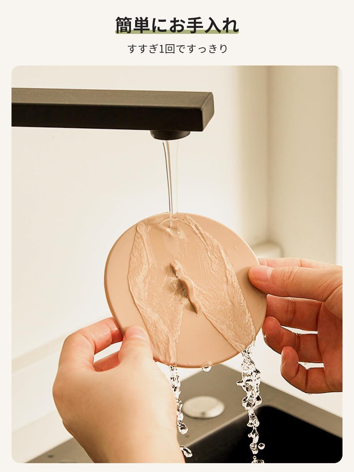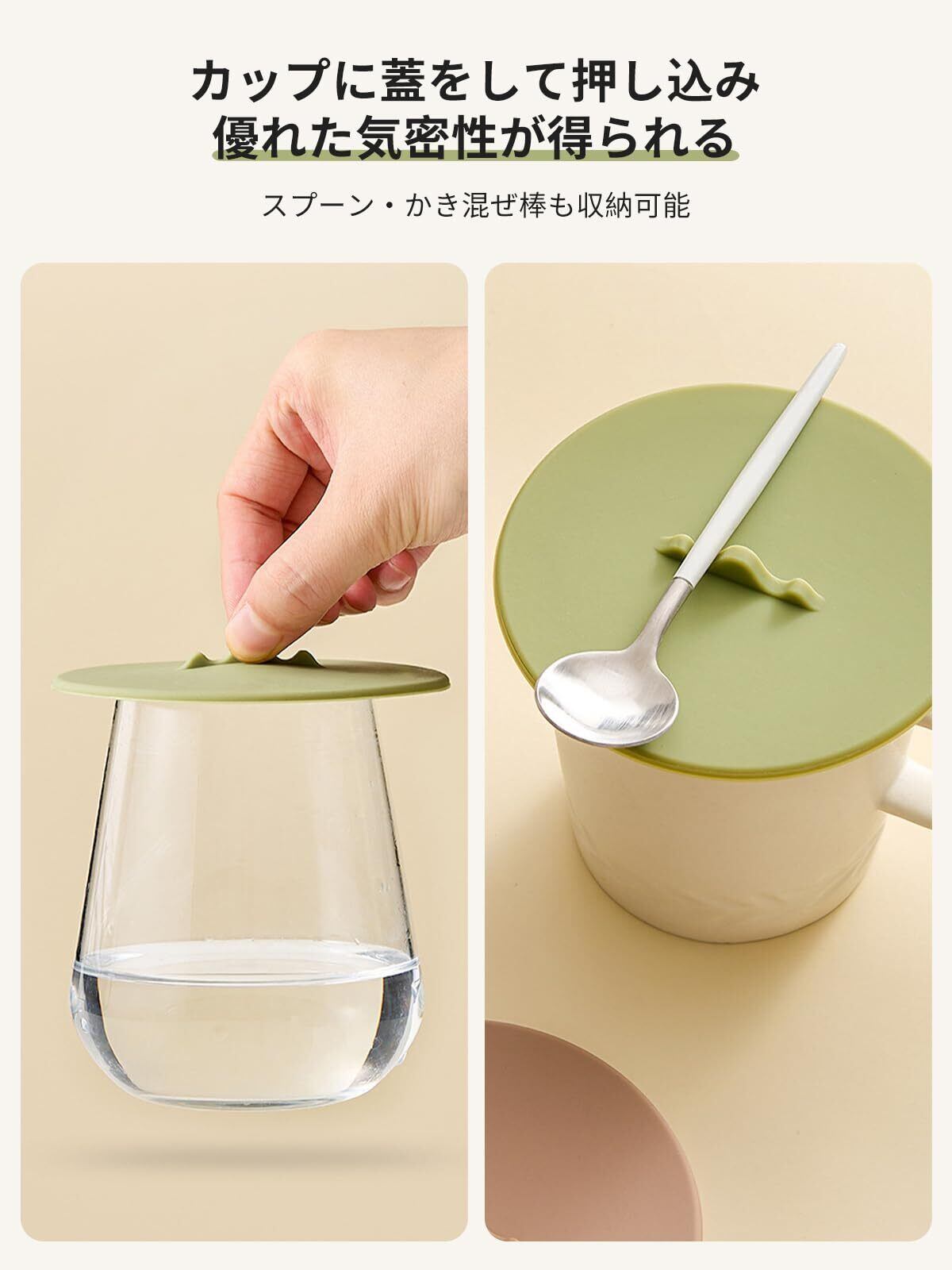 【優れた密閉性】カップ、瓶 に蓋を置き、軽く押すだけで気密で漏れ防止の吸引シールが形成されます。 そして周囲の吊り下げ部分はカップを完璧に包み込み、ほこりの侵入を防ぎます。