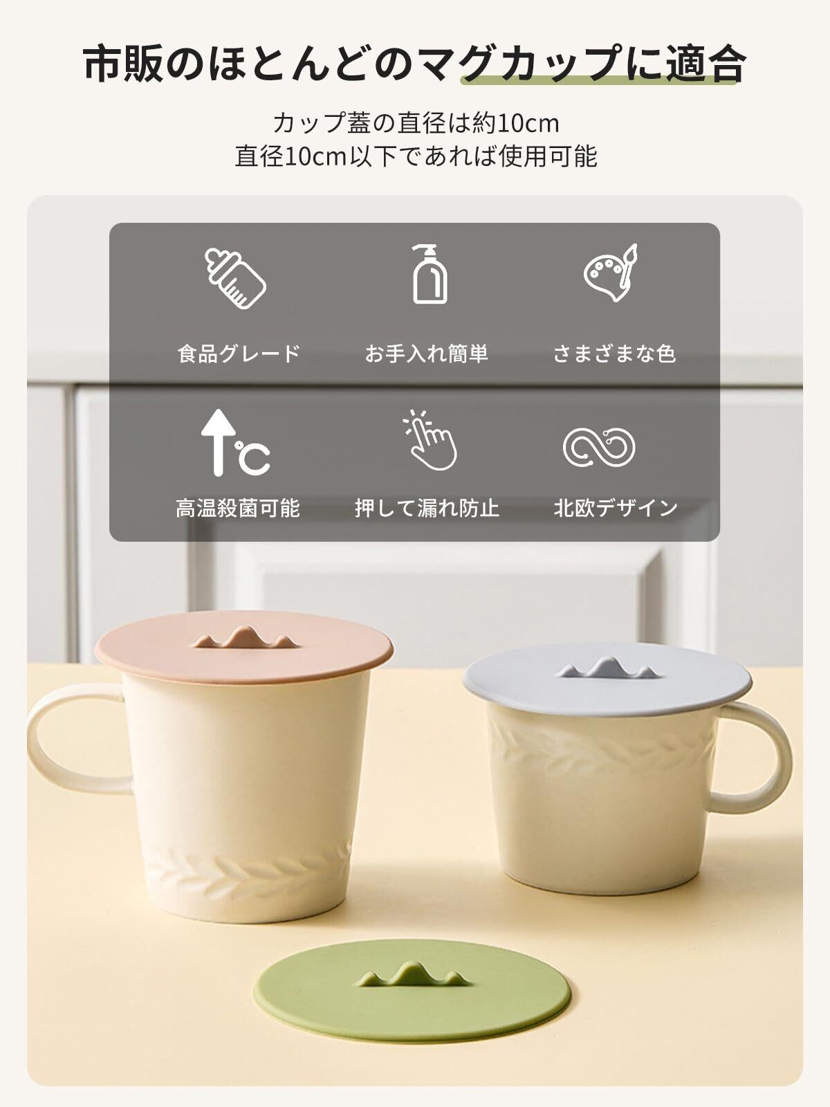 【かわいい山の形のシリコン蓋】かわいい山型のシリコン蓋がカップを楽しくしてくれます。さまざまな色の組み合わせのシリコンカップ蓋が含まれており、ほとんどのカップやマグカップに適したサイズです。