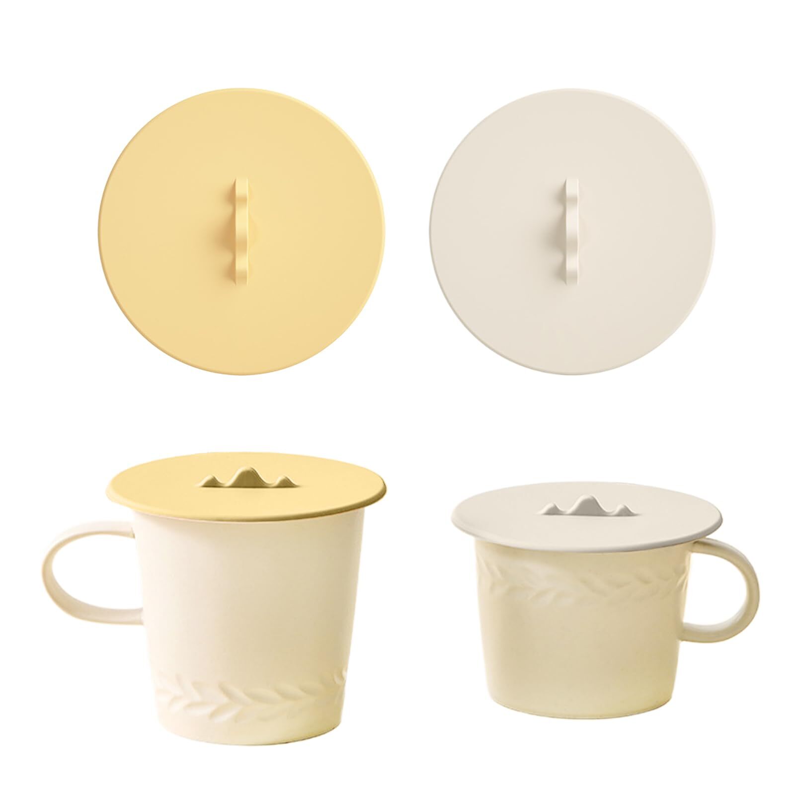 aninako マグカップ カップカバー 2個 かわいい山の形 シリコン 蓋 耐冷 耐熱 漏れ防止 気密シール 防塵 再利用可能 食洗機対応 カップ保温 可愛い コップ蓋 ティーカップ (オフホワイト+薄黄色)